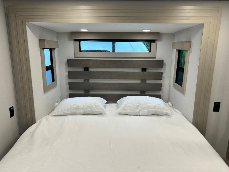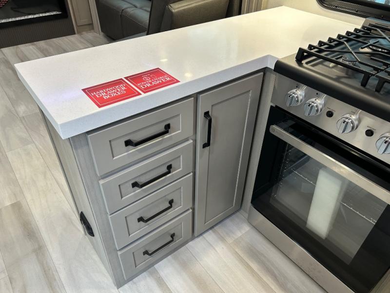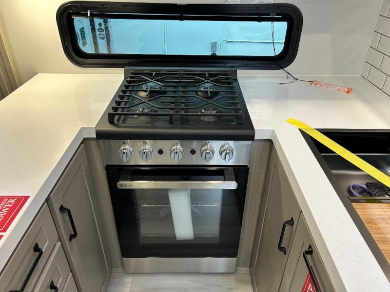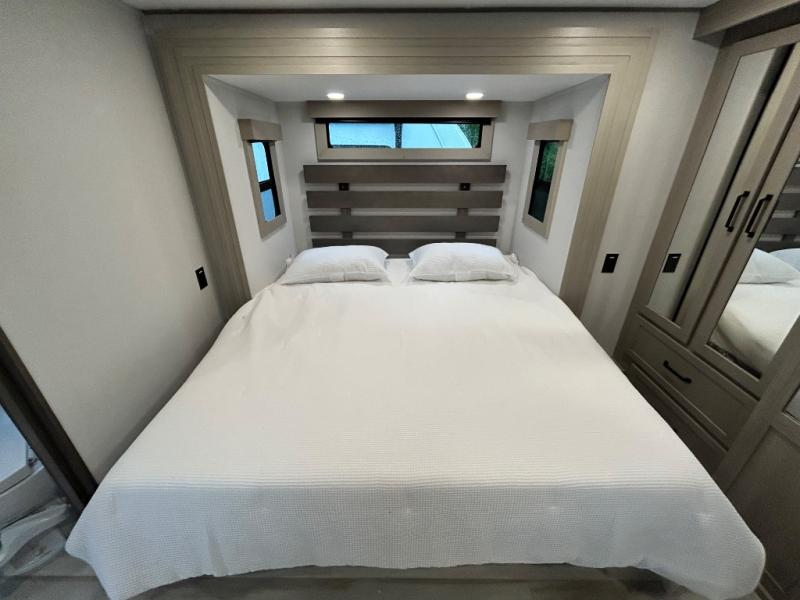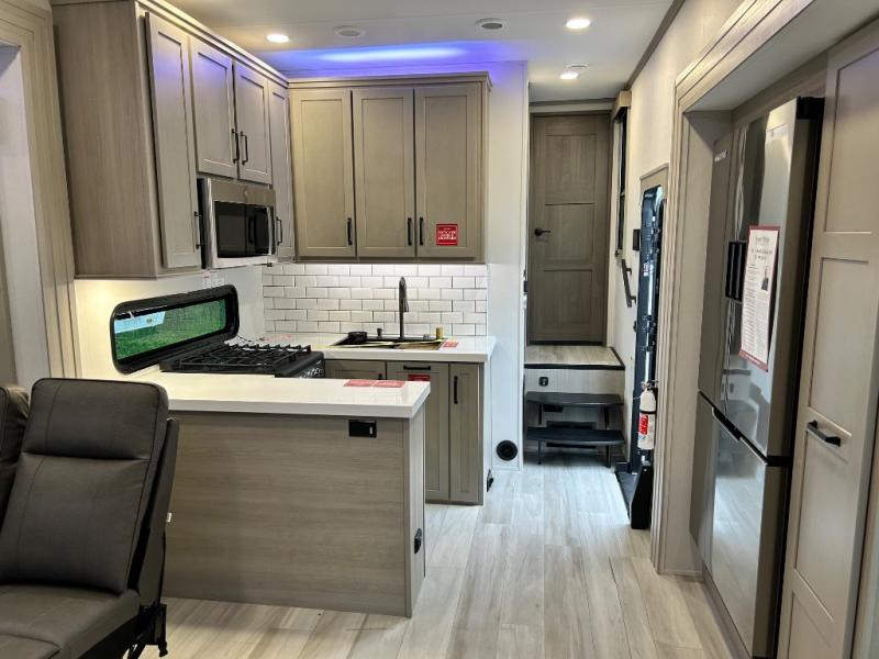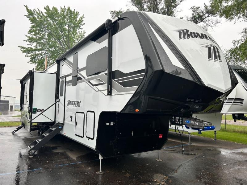 With any Momentum M-Class toy hauler by Grand Design, you will enjoy luxury at every turn! They have been constructed to a superior standard with a thermal roof design, triple insulated main floor and garage floor, and a Rail-Tite underbelly seal that will allow you to camp in all elements. Each model also features a, 8' 5" wide body chassis with a wide rail design, no wheel wheels, and a dovetail entry for easier loading. The Stealth A/C system provides maximum cooling power, and the CRE3000 suspension system means you can enjoy a smooth tow each time. You will love the luxurious interior with a professional grade stainless steel cooktop, interior color changing LED accent lighting, a fiberglass shower with a glass door, and solid surface countertops.