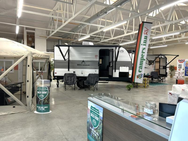 Garage Pull Down Screen, 8 Cu. Ft. 12V Refrigerator, Power Vent in Bath - Campers Inn RV of South Louisville 502-955-7484
