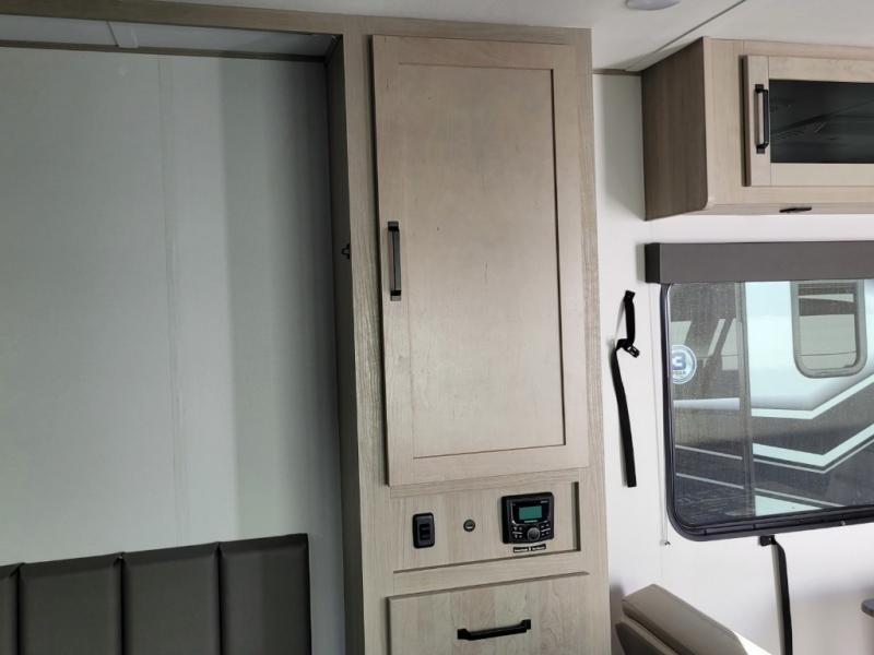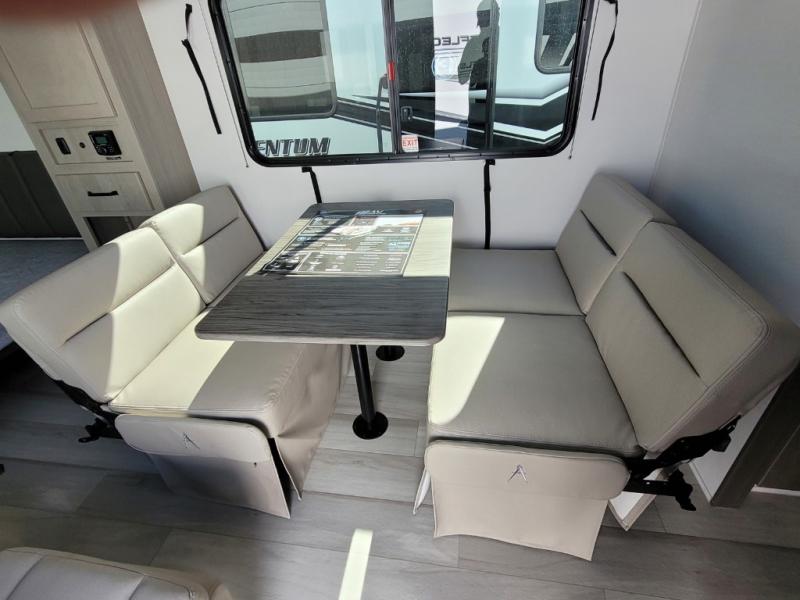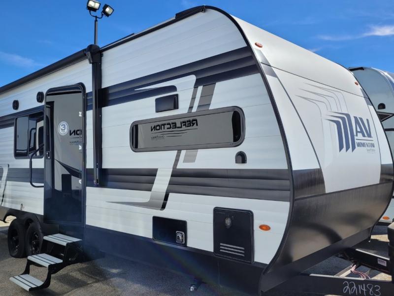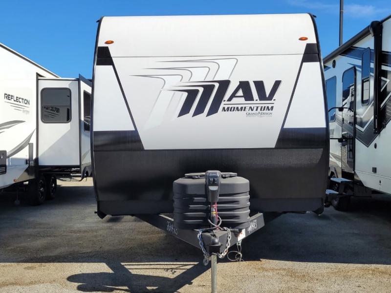 The Momentum MAV toy hauler travel trailers by Grand Design are designed to provide exactly what you need. The spacious garage provides tons of cargo space, with no wheel wells to get in the way. Additional storage includes magnetic storage door catches, underbed storage with a gas strut lift, and overhead consoles throughout. Conveniences like motion sensor lights and USB outlets will make your life easier, and you will be comfortable in all seasons with the 30K BTU furnace plus 15K BTU ducted air conditioning. The standard Solar Package comes with a 180W solar panel, a 40 Amp charge controller with Bluetooth, and a 12V refrigerator so you can go off-grid when the adventure calls for it.