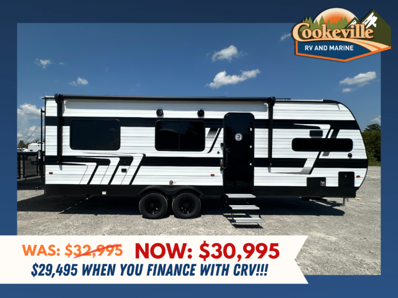 This is the perfect toy hauler for two campers looking for adventure! Once your toys are unloaded using the ramp door, you will enjoy the patio system that will provide more living space. The queen Murphy bed will provide seating and sleeping space, and there is TV prep across from the bed if you want the option to watch movies in bed. Head to the front corner kitchen to make lunch on the three burner range, and leftovers can go in the 8 cu. ft. 12V refrigerator. You'll find the full bath in the other front corner, which will allow you to freshen up after a day of trail riding! This model also includes a fold-up dinette where you can dine each day, or you can take your plate outdoors to sit under the 17' power awning!
