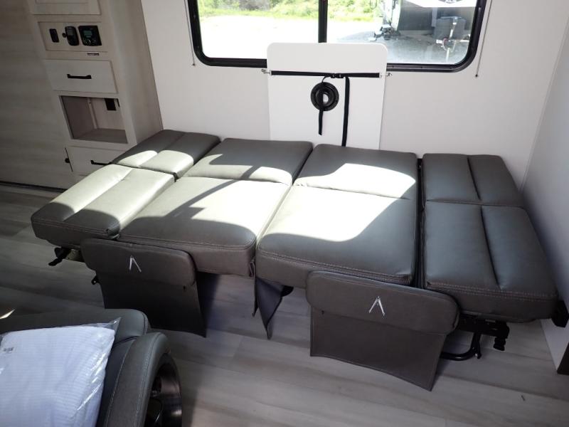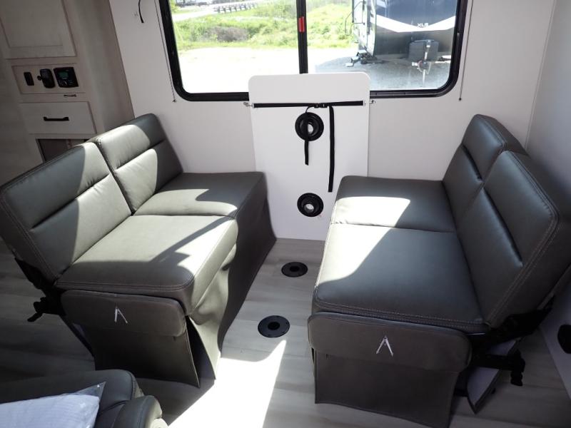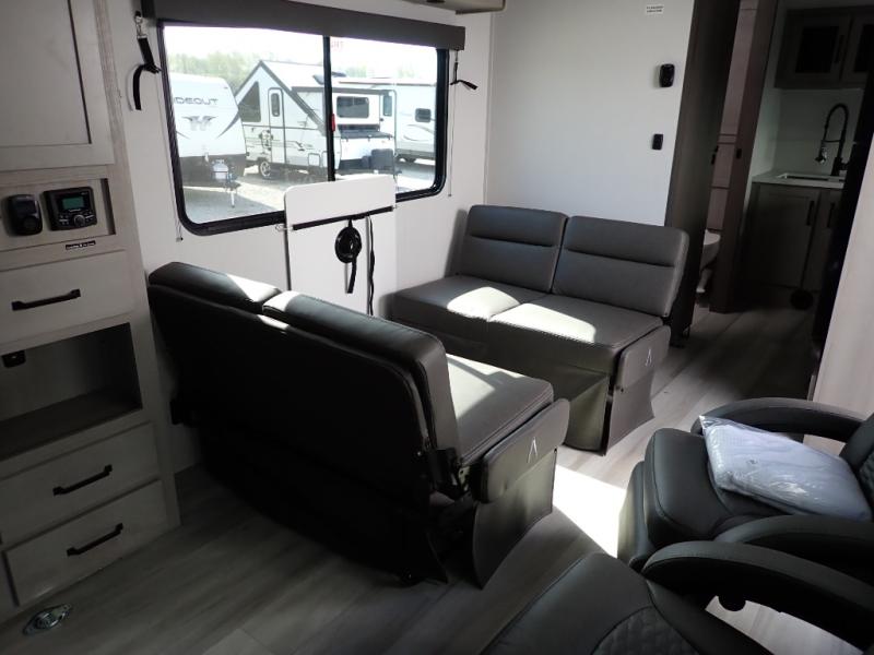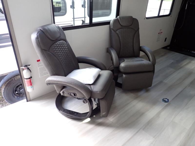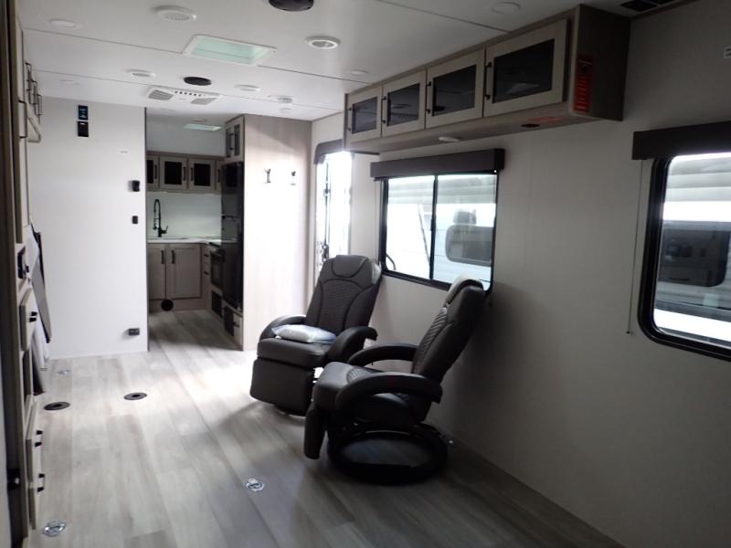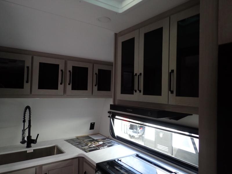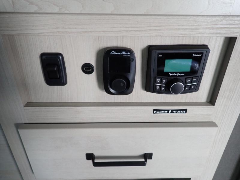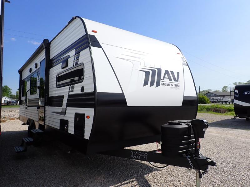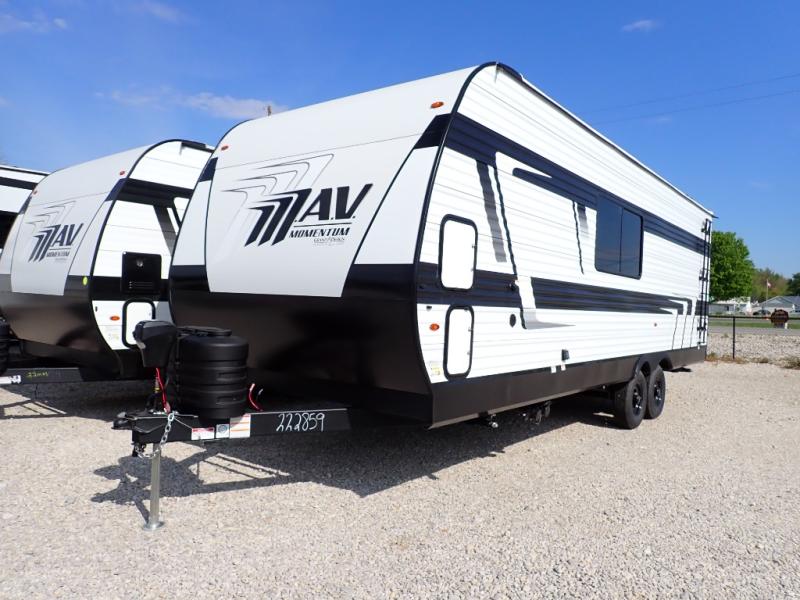 The Momentum MAV toy hauler travel trailers by Grand Design are designed to provide exactly what you need. The spacious garage provides tons of cargo space, with no wheel wells to get in the way. Additional storage includes magnetic storage door catches, underbed storage with a gas strut lift, and overhead consoles throughout. Conveniences like motion sensor lights and USB outlets will make your life easier, and you will be comfortable in all seasons with the 30K BTU furnace plus 15K BTU ducted air conditioning. The standard Solar Package comes with a 180W solar panel, a 40 Amp charge controller with Bluetooth, and a 12V refrigerator so you can go off-grid when the adventure calls for it.