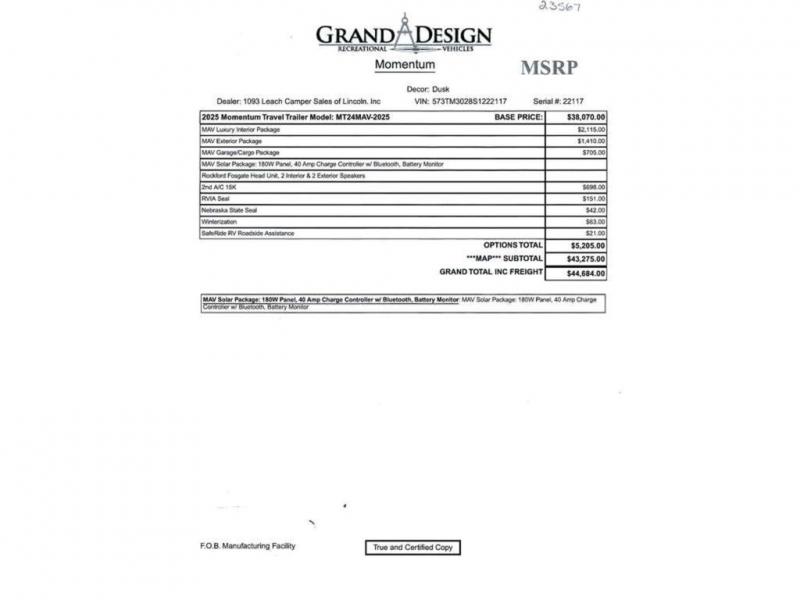 New 2025 Grand Design Momentum MAV 24MAV Toy Hauler Travel Trailer
