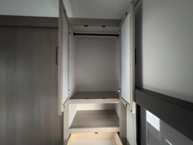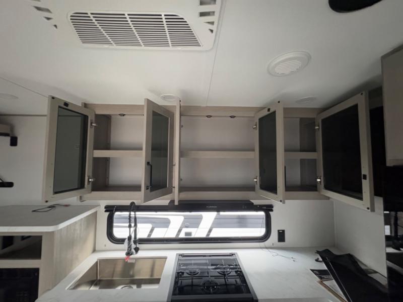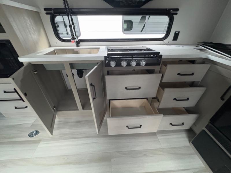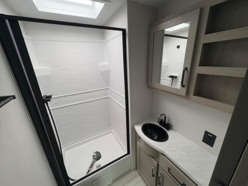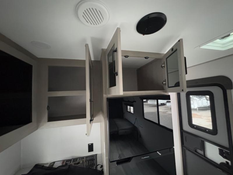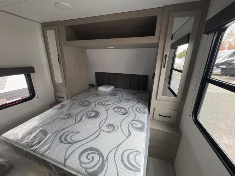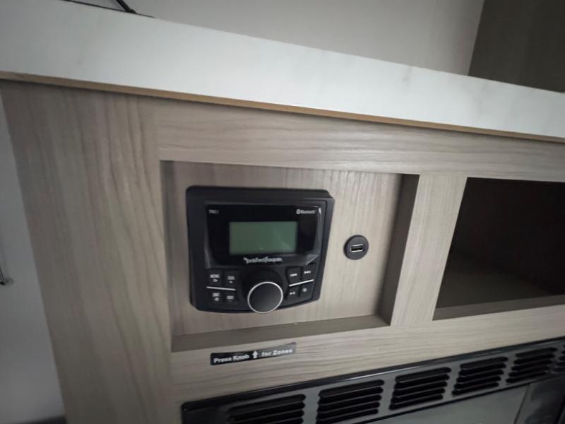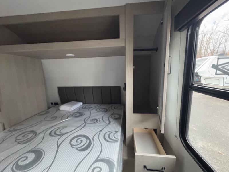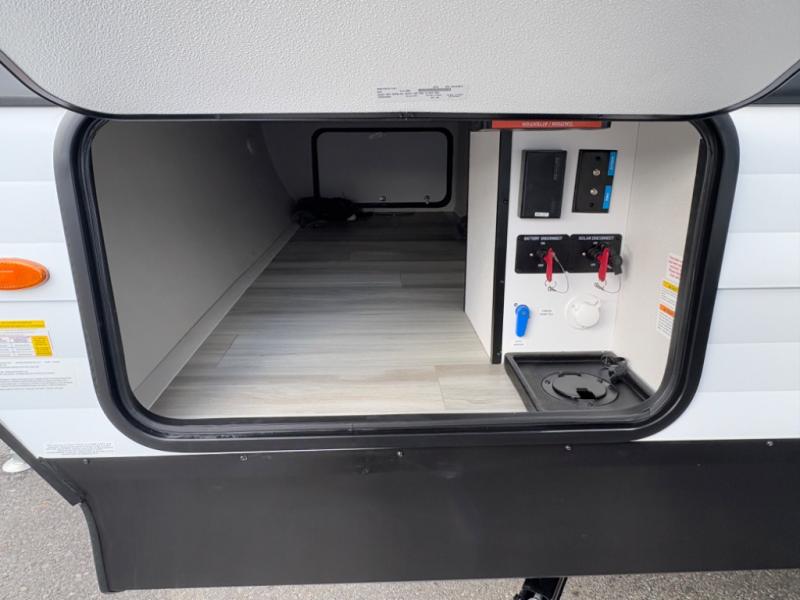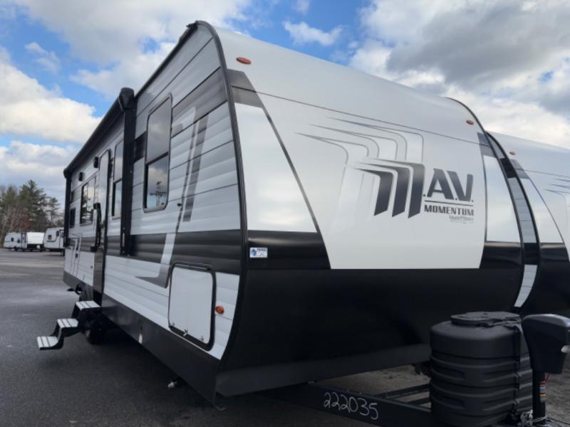 The Momentum MAV toy hauler travel trailers by Grand Design are designed to provide exactly what you need. The spacious garage provides tons of cargo space, with no wheel wells to get in the way. Additional storage includes magnetic storage door catches, underbed storage with a gas strut lift, and overhead consoles throughout. Conveniences like motion sensor lights and USB outlets will make your life easier, and you will be comfortable in all seasons with the 30K BTU furnace plus 15K BTU ducted air conditioning. The standard Solar Package comes with a 180W solar panel, a 40 Amp charge controller with Bluetooth, and a 12V refrigerator so you can go off-grid when the adventure calls for it.