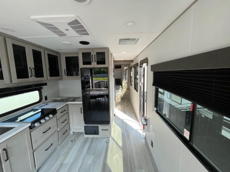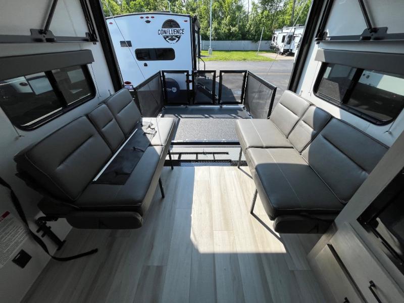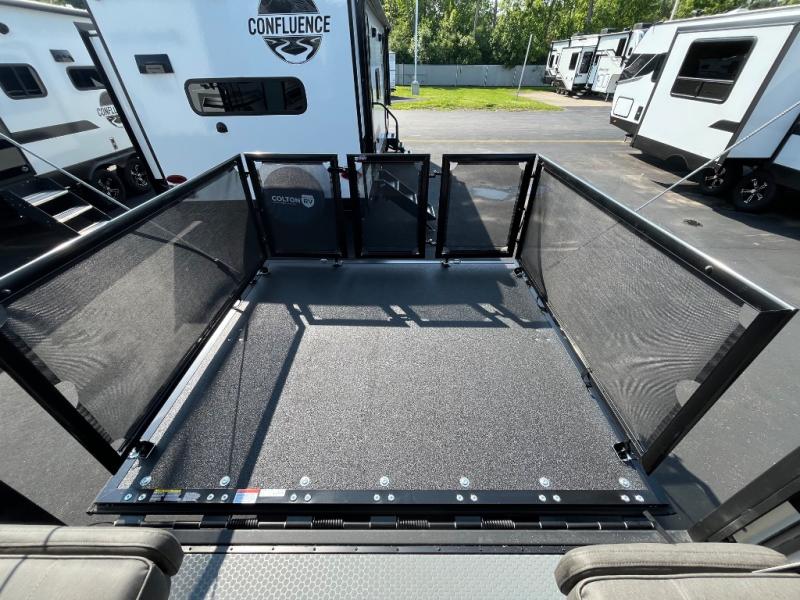 The Momentum MAV toy hauler travel trailers by Grand Design are designed to provide exactly what you need. The spacious garage provides tons of cargo space, with no wheel wells to get in the way. Additional storage includes magnetic storage door catches, underbed storage with a gas strut lift, and overhead consoles throughout. Conveniences like motion sensor lights and USB outlets will make your life easier, and you will be comfortable in all seasons with the 30K BTU furnace plus 15K BTU ducted air conditioning. The standard Solar Package comes with a 180W solar panel, a 40 Amp charge controller with Bluetooth, and a 12V refrigerator so you can go off-grid when the adventure calls for it.