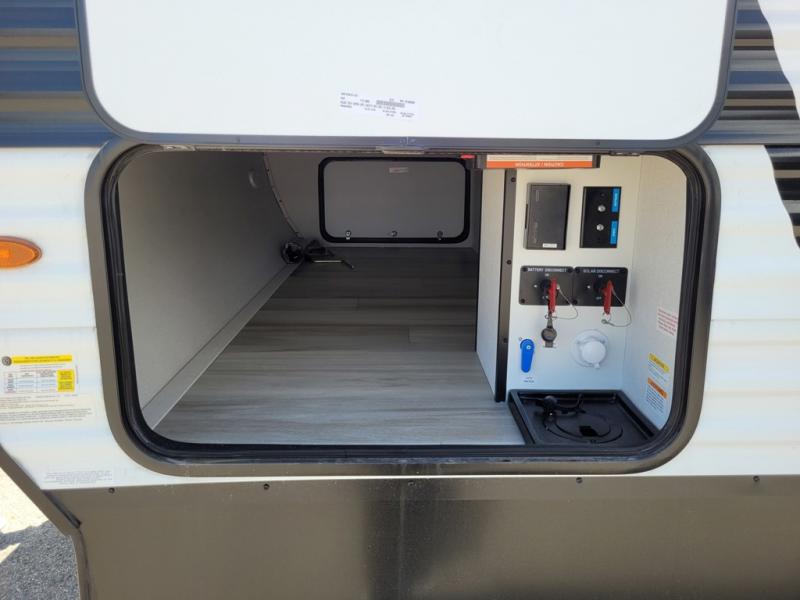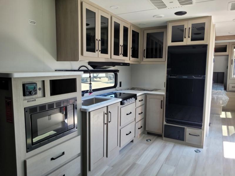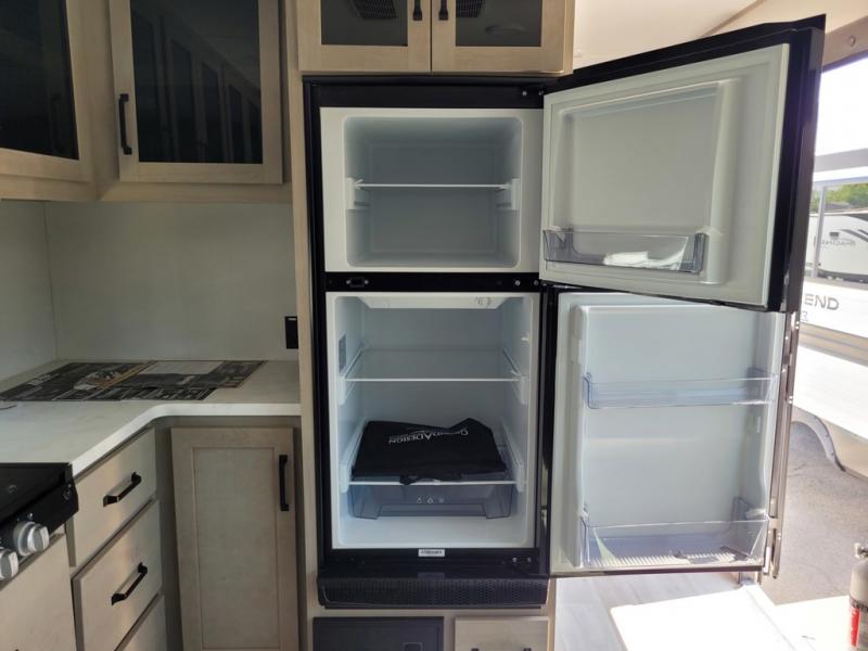 The Momentum MAV toy hauler travel trailers by Grand Design are designed to provide exactly what you need. The spacious garage provides tons of cargo space, with no wheel wells to get in the way. Additional storage includes magnetic storage door catches, and overhead consoles throughout. Conveniences like motion sensor lights and USB outlets will make your life easier, and you will be comfortable in all seasons with the 30K BTU furnace plus 15K BTU ducted air conditioning. The standard Solar Package comes with a 180W solar panel, a 40 Amp charge controller with Bluetooth, and a 12V refrigerator so you can go off-grid when the adventure calls for it.