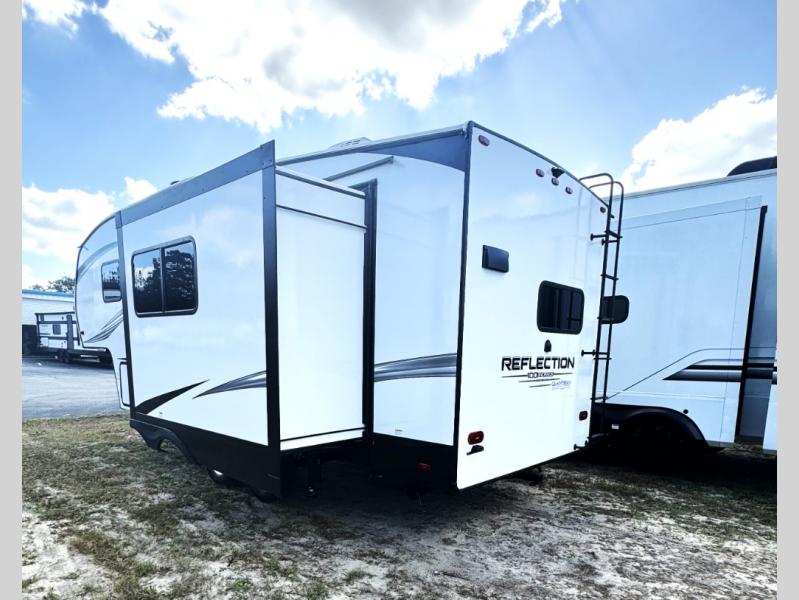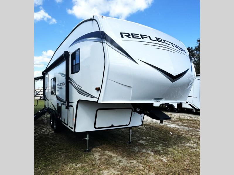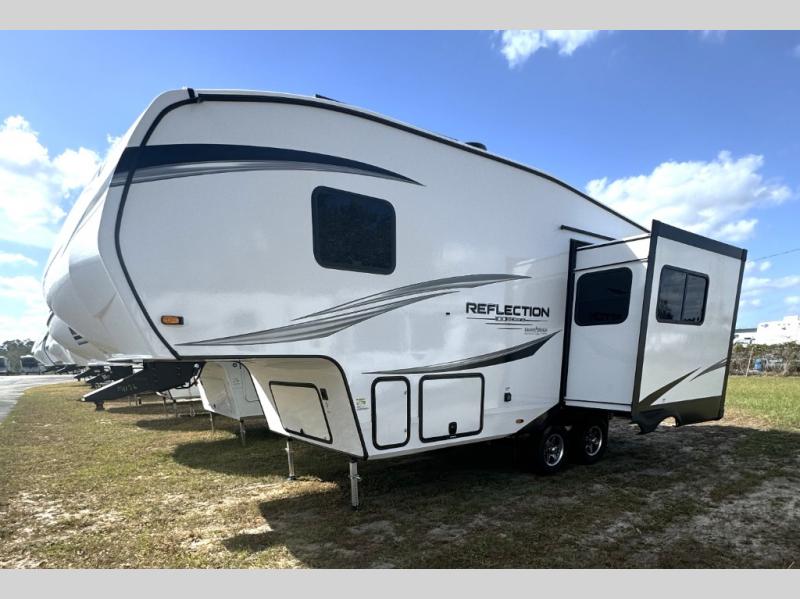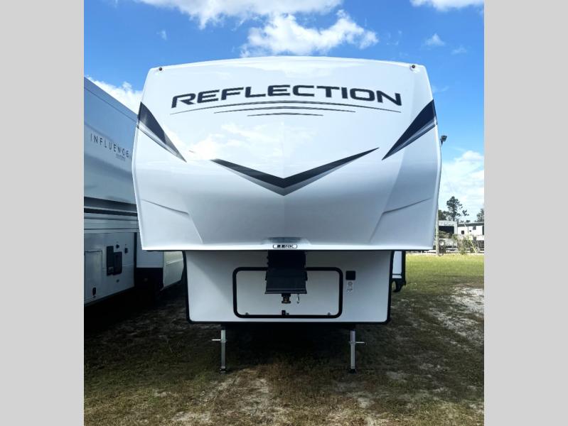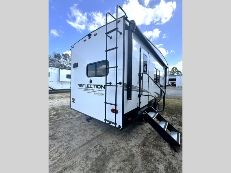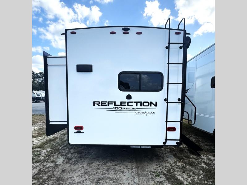 Each Reflection 100 Series fifth wheel by Grand Design is affordable and packed with luxury for unforgettable camping memories! The MorRyde CRE3000 suspension system and Goodyear Endurance tires will provide smooth towing from home to campground. And the solar package with a 180W solar panel, 60 Amp charge controller and 12V refrigerator will allow you to camp for longer periods of time and in more locations! A heated and enclosed underbelly with circulating heat is included in the Arctic 4-Seasons Protection Package, along with a double insulated roof and front cap, and thermofoil insulation under the holding tanks so you can camp all year long if you choose. You will appreciate having an on-demand water heater for hot showers after exploring, and the universal all-in-one docking station will let you monitor your RVs tanks levels and functions with ease. These models also include many luxurious interior features, such as premium Congoleum flooring, pleated shades, residential cabinetry, and matte black fixtures and hardware. Don't let the Reflection 100 Series fifth wheels pass you by!