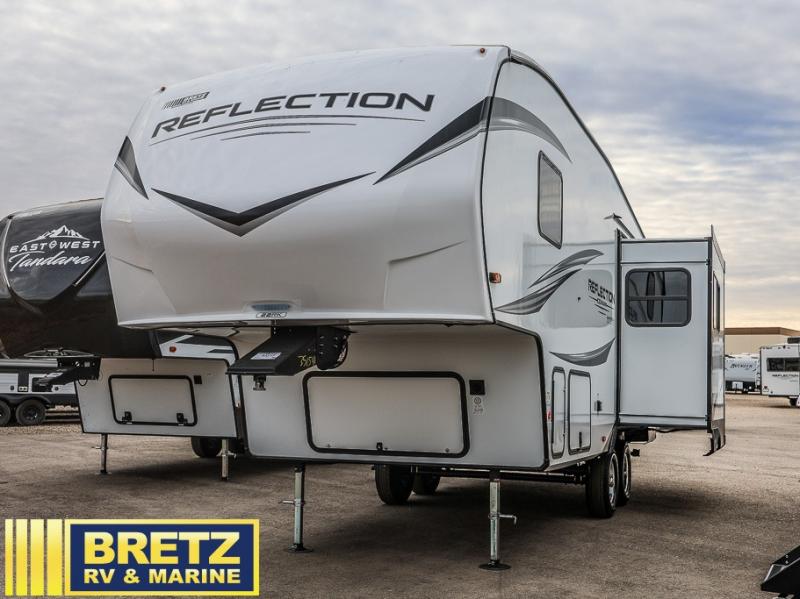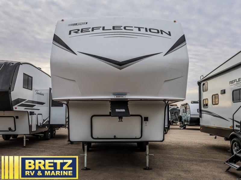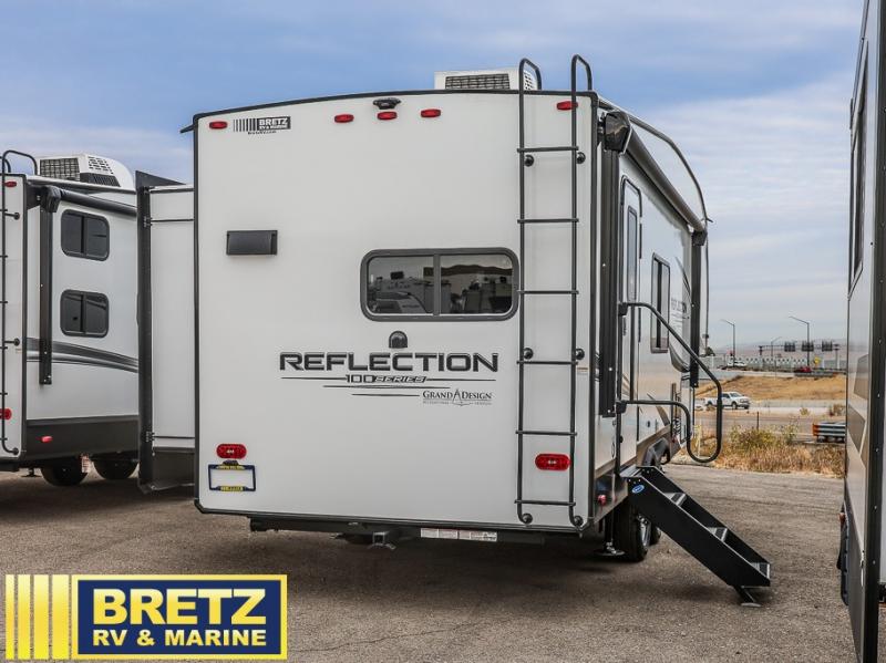 Each Reflection 100 Series fifth wheel by Grand Design is affordable and packed with luxury for unforgettable camping memories! The MorRyde CRE3000 suspension system and Goodyear Endurance tires will provide smooth towing from home to campground. And the solar package with a 180W solar panel, 60 Amp charge controller and 12V refrigerator will allow you to camp for longer periods of time and in more locations! A heated and enclosed underbelly with circulating heat is included in the Arctic 4-Seasons Protection Package, along with a double insulated roof and front cap, and thermofoil insulation under the holding tanks so you can camp all year long if you choose. You will appreciate having an on-demand water heater for hot showers after exploring, and the universal all-in-one docking station will let you monitor your RVs tanks levels and functions with ease. These models also include many luxurious interior features, such as premium Congoleum flooring, pleated shades, residential cabinetry, and matte black fixtures and hardware. Don't let the Reflection 100 Series fifth wheels pass you by!