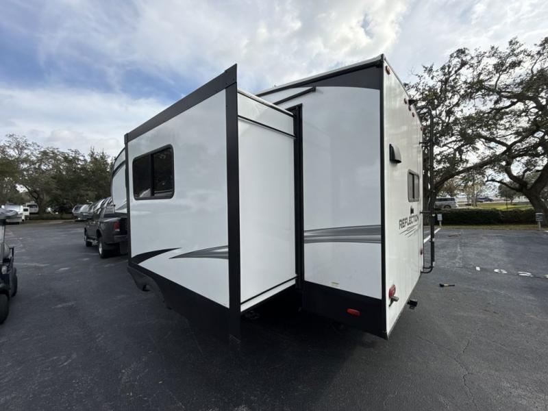 Each Reflection 100 Series fifth wheel by Grand Design is affordable and packed with luxury for unforgettable camping memories! The MorRyde CRE3000 suspension system and Goodyear Endurance tires will provide smooth towing from home to campground. And the solar package with a 180W solar panel, 60 Amp charge controller and 12V refrigerator will allow you to camp for longer periods of time and in more locations! A heated and enclosed underbelly with circulating heat is included in the Arctic 4-Seasons Protection Package, along with a double insulated roof and front cap, and thermofoil insulation under the holding tanks so you can camp all year long if you choose. You will appreciate having an on-demand water heater for hot showers after exploring, and the universal all-in-one docking station will let you monitor your RVs tanks levels and functions with ease. These models also include many luxurious interior features, such as premium Congoleum flooring, pleated shades, residential cabinetry, and matte black fixtures and hardware. Don't let the Reflection 100 Series fifth wheels pass you by!