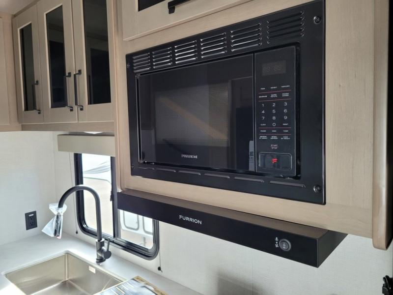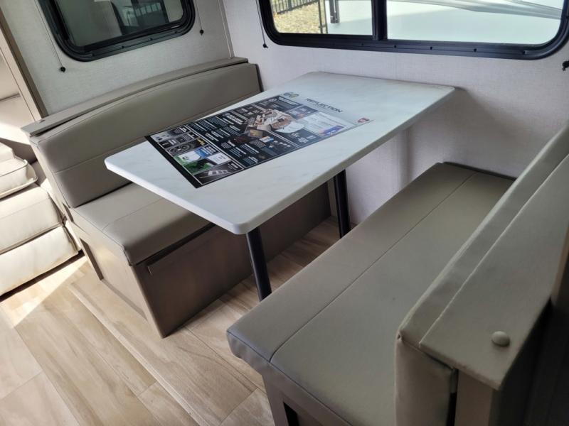 This is the perfect couple's trailer with a space for an overnight guest or two little ones on the booth dinette. You can switch out this dinette for an optional swivel dinette as well, and the standard theater seating can be replaced by an optional trundle bed if you need more sleeping space. A 40" HDTV will keep you entertained when the weather isn't cooperating, and you can whip up your best meals in the full kitchen. And a 19' power awning will provide shade if you choose to take your plate outdoors! The spacious full bath will let you clean up each day, and you'll feel right at home in the front private bedroom with a queen bed!