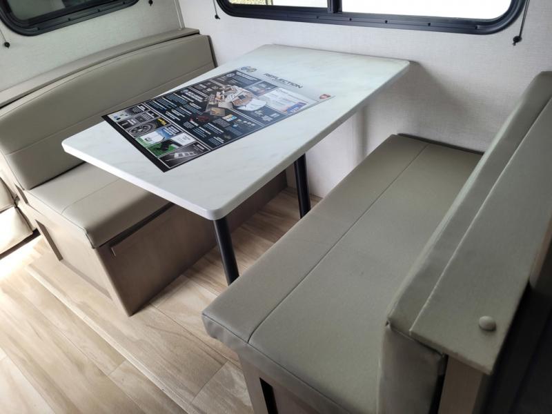 Each Reflection 100 Series fifth wheel by Grand Design is affordable and packed with luxury for unforgettable camping memories! The MorRyde CRE3000 suspension system and Goodyear Endurance tires will provide smooth towing from home to campground. And the solar package with a 180W solar panel, 60 Amp charge controller and 12V refrigerator will allow you to camp for longer periods of time and in more locations! A heated and enclosed underbelly with circulating heat is included in the Arctic 4-Seasons Protection Package, along with a double insulated roof and front cap, and thermofoil insulation under the holding tanks so you can camp all year long if you choose. You will appreciate having an on-demand water heater for hot showers after exploring, and the universal all-in-one docking station will let you monitor your RVs tanks levels and functions with ease. These models also include many luxurious interior features, such as premium Congoleum flooring, pleated shades, residential cabinetry, and matte black fixtures and hardware. Don't let the Reflection 100 Series fifth wheels pass you by!