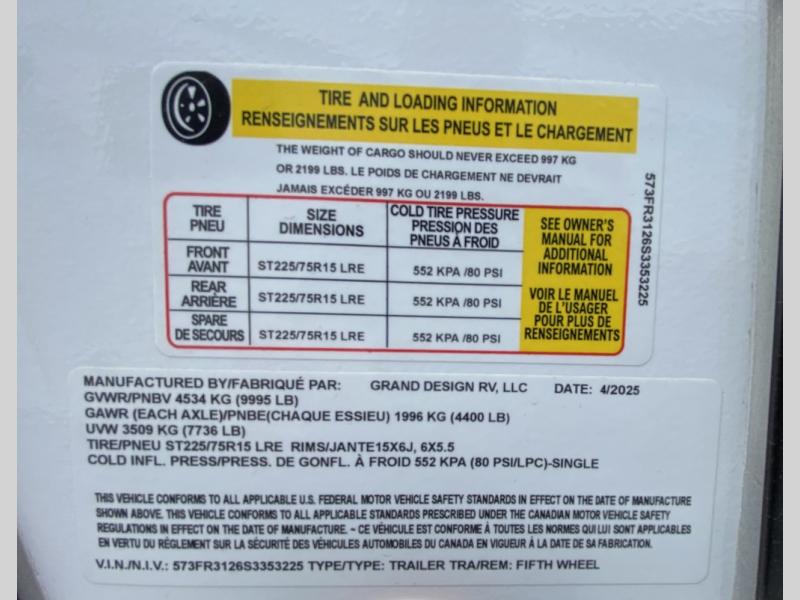 New 2025 Grand Design Reflection 100 Series 24RL Fifth Wheel