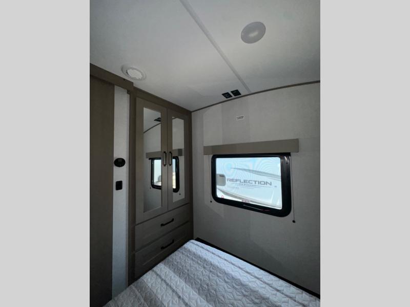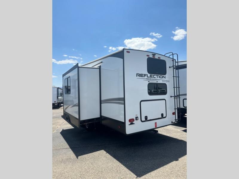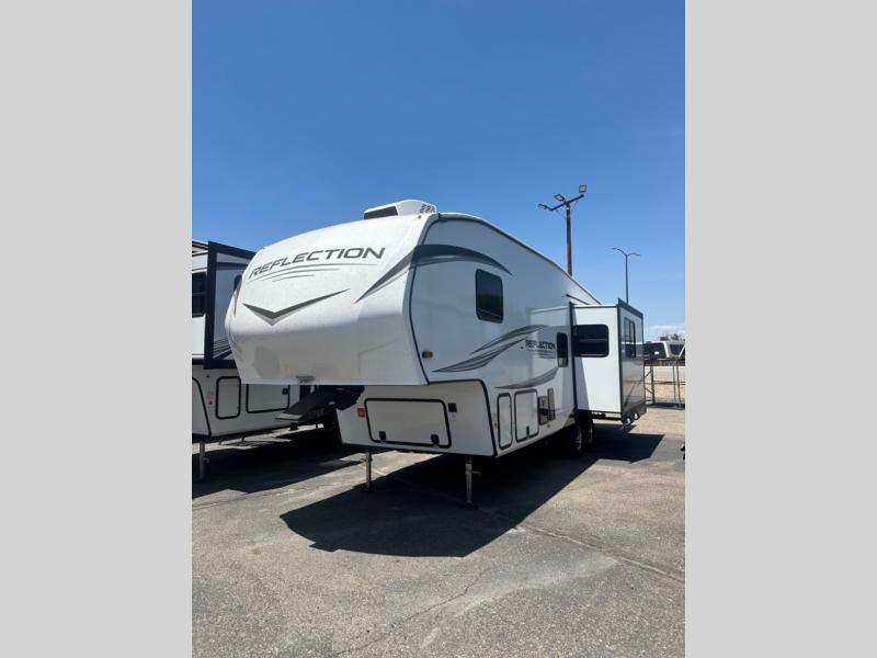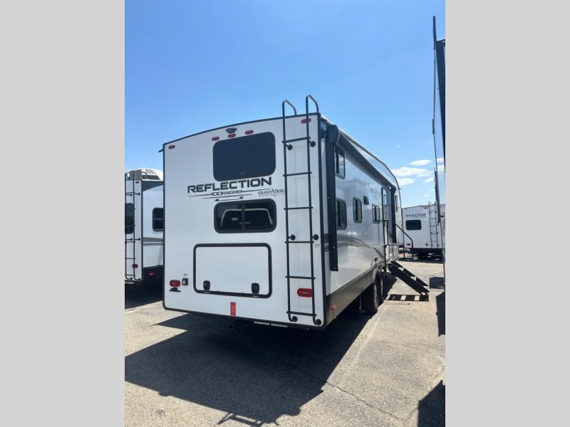 Each Reflection 100 Series fifth wheel by Grand Design is affordable and packed with luxury for unforgettable camping memories! The MorRyde CRE3000 suspension system and Goodyear Endurance tires will provide smooth towing from home to campground. And the solar package with a 180W solar panel, 60 Amp charge controller and 12V refrigerator will allow you to camp for longer periods of time and in more locations! A heated and enclosed underbelly with circulating heat is included in the Arctic 4-Seasons Protection Package, along with a double insulated roof and front cap, and thermofoil insulation under the holding tanks so you can camp all year long if you choose. You will appreciate having an on-demand water heater for hot showers after exploring, and the universal all-in-one docking station will let you monitor your RVs tanks levels and functions with ease. These models also include many luxurious interior features, such as premium Congoleum flooring, pleated shades, residential cabinetry, and matte black fixtures and hardware. Don't let the Reflection 100 Series fifth wheels pass you by!