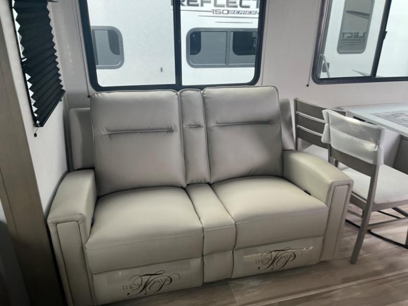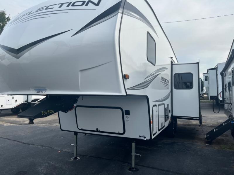Each Reflection 100 Series fifth wheel by Grand Design is affordable and packed with luxury for unforgettable camping memories! The MorRyde CRE3000 suspension system and Goodyear Endurance tires will provide smooth towing from home to campground. And the solar package with a 180W solar panel, 60 Amp charge controller and 12V refrigerator will allow you to camp for longer periods of time and in more locations! A heated and enclosed underbelly with circulating heat is included in the Arctic 4-Seasons Protection Package, along with a double insulated roof and front cap, and thermofoil insulation under the holding tanks so you can camp all year long if you choose. You will appreciate having an on-demand water heater for hot showers after exploring, and the universal all-in-one docking station will let you monitor your RVs tanks levels and functions with ease. These models also include many luxurious interior features, such as premium Congoleum flooring, pleated shades, residential cabinetry, and matte black fixtures and hardware. Don't let the Reflection 100 Series fifth wheels pass you by!