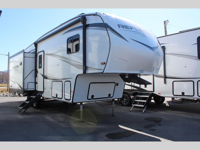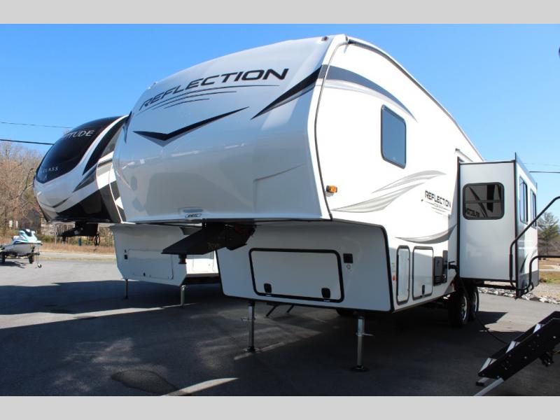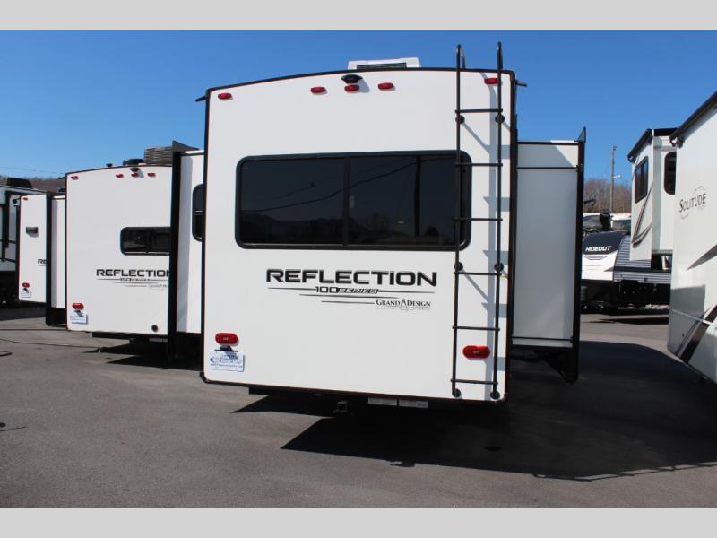 Each Reflection 100 Series fifth wheel by Grand Design is affordable and packed with luxury for unforgettable camping memories! The MorRyde CRE3000 suspension system and Goodyear Endurance tires will provide smooth towing from home to campground. And the solar package with a 180W solar panel, 60 Amp charge controller and 12V refrigerator will allow you to camp for longer periods of time and in more locations! A heated and enclosed underbelly with circulating heat is included in the Arctic 4-Seasons Protection Package, along with a double insulated roof and front cap, and thermofoil insulation under the holding tanks so you can camp all year long if you choose. You will appreciate having an on-demand water heater for hot showers after exploring, and the universal all-in-one docking station will let you monitor your RVs tanks levels and functions with ease. These models also include many luxurious interior features, such as premium Congoleum flooring, pleated shades, residential cabinetry, and matte black fixtures and hardware. Don't let the Reflection 100 Series fifth wheels pass you by!
