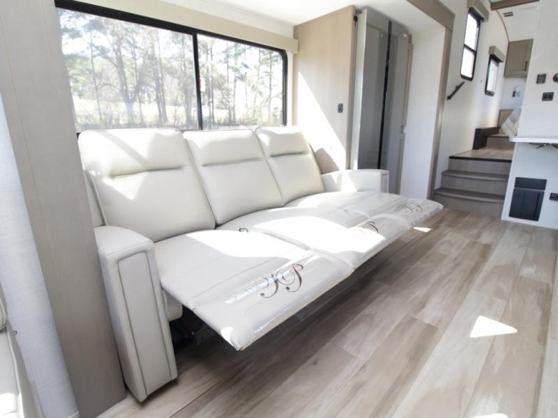 Relax after a day of adventure in the 78-inch theatre seating, positioned perfectly for watching the 40-inch LED HDTV. When you’re ready to enjoy the outdoors, the 18-foot electric awning provides the perfect shaded retreat.