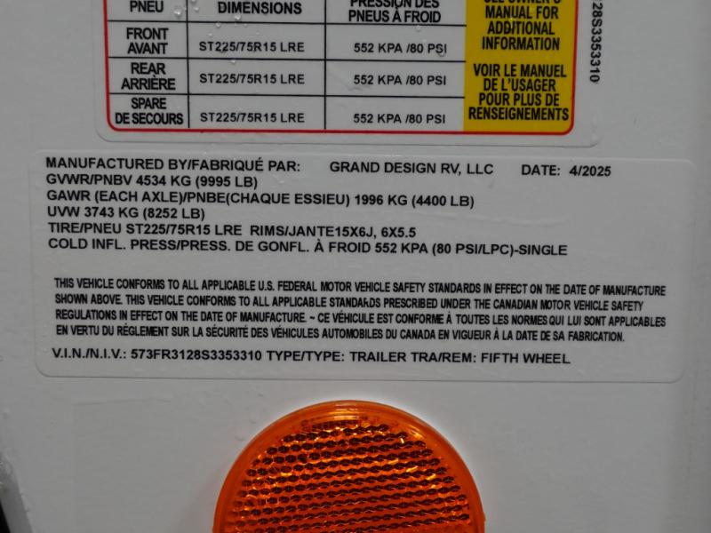 New 2025 Grand Design Reflection 150 Series 260RD Fifth Wheel
