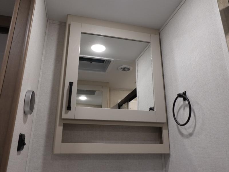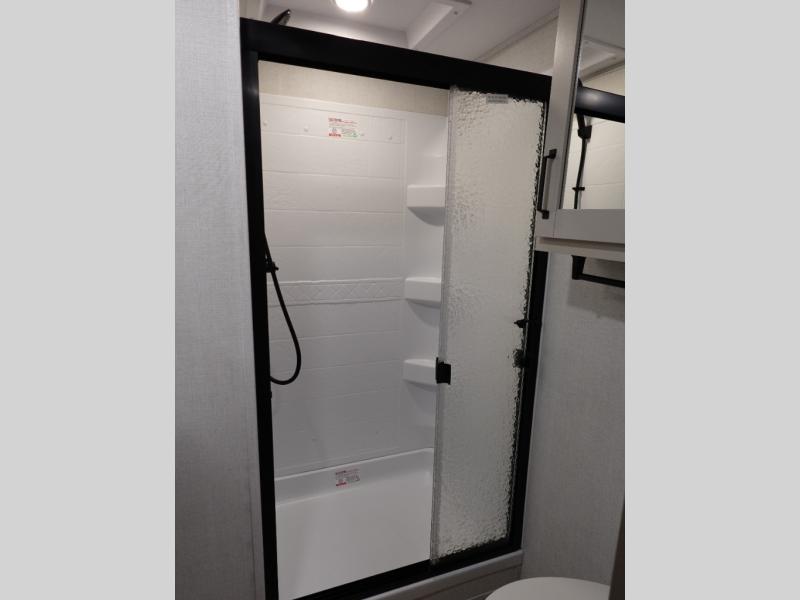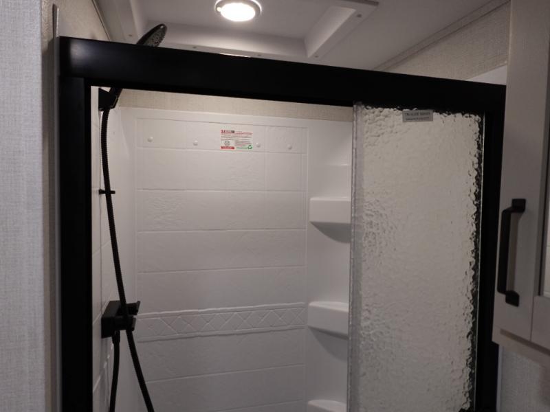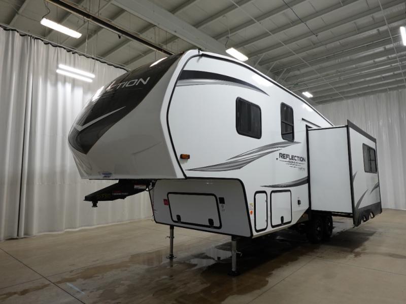 Feel right at home in this Reflection 150 Series with a private bedroom that includes a walk-around queen bed with storage on each side, windows, and a space savings sliding door. The full bathroom offers a walk-in shower, storage for your linens and a sliding door for easy access. When you get hungry, the cook will have an L-shaped kitchen area to make meals, plus full amenities including a 30" microwave, a flip-up counter extension, a pantry for your dry goods and a 16 cu. ft. refrigerator to store lots of food and cold beverages. You can dine at the rear U-shaped dinette lounge and enjoy the view out of all the windows or outside under the 18' electric awning. And the 78" theatre seating will be a nice place to relax and watch the 40" LED HDTV.