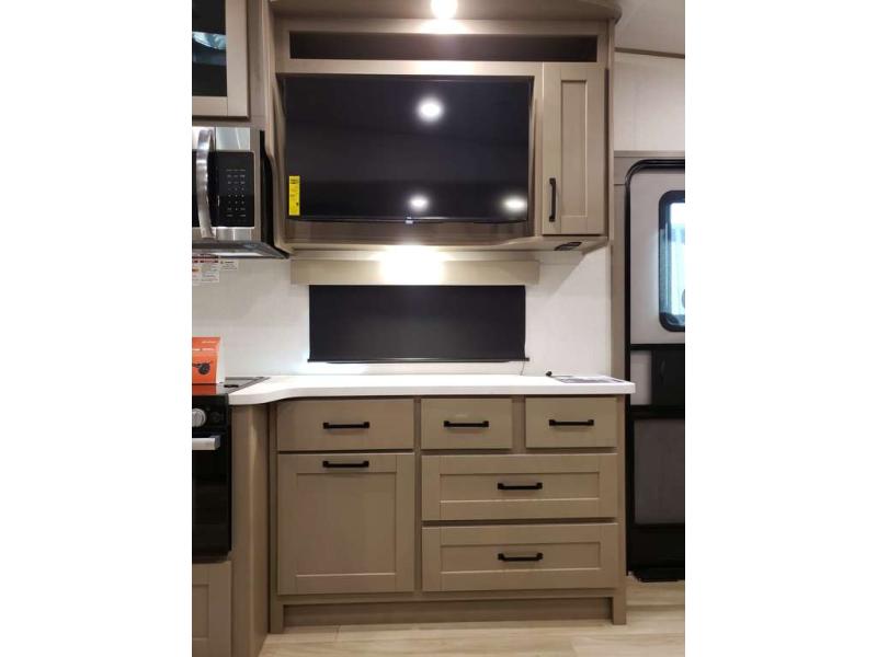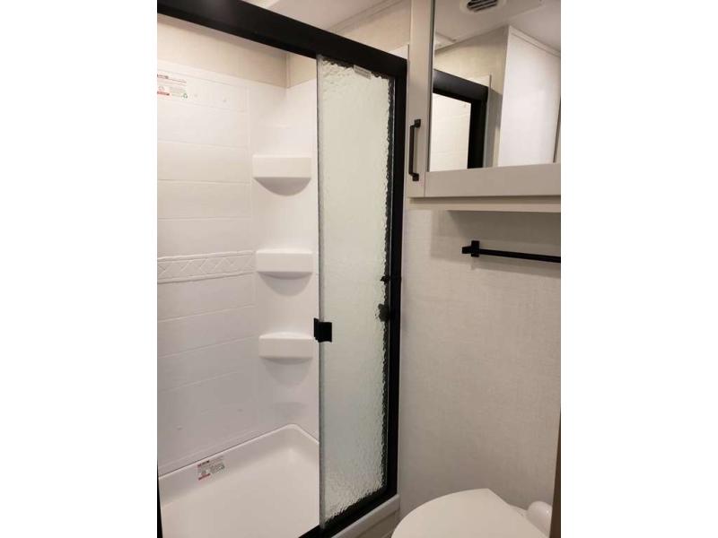 Feel right at home in this Reflection 150 Series with a private bedroom that includes a walk-around queen bed with storage on each side, windows, and a space savings sliding door. The full bathroom offers a walk-in shower, storage for your linens and a sliding door for easy access. When you get hungry, the cook will have an L-shaped kitchen area to make meals, plus full amenities including a 30" microwave, a flip-up counter extension, a pantry for your dry goods and a 16 cu. ft. refrigerator to store lots of food and cold beverages. You can dine at the rear U-shaped dinette lounge and enjoy the view out of all the windows or outside under the 18' electric awning. And the 78" theatre seating will be a nice place to relax and watch the 40" LED HDTV.