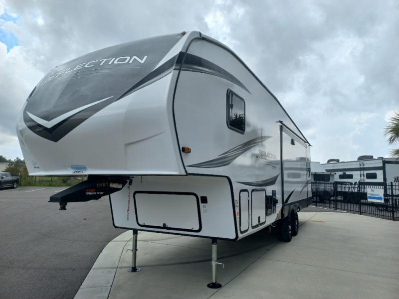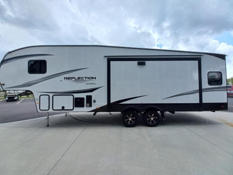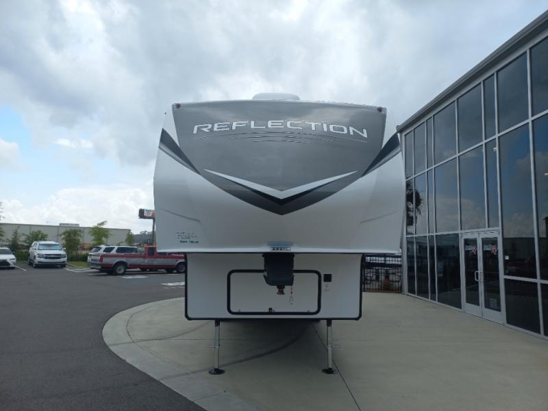 With any Reflection 150 Series fifth wheel by Grand Design, there is more available payload capacity and a broader range of half-ton trucks capable of towing this fifth wheel, and no slider hitch is needed thanks to the 90-degree turning radius which makes them short bed friendly and easier to tow. The mandatory Ultimate Power package provides a "One-Touch" automatic leveling system and a detachable power cord with LED light for easy setup, plus motion sensor pass-through lighting and entry lighting, and the Tire Linc TPMS will help you stay safe on the road. The interior offers residential luxury from the cabinetry and premium congoleum flooring, plus the booth dinette to the residential-style window treatment. Make your refined decision today!
