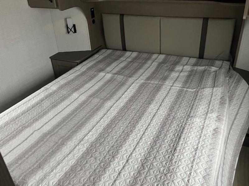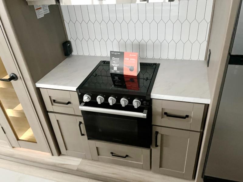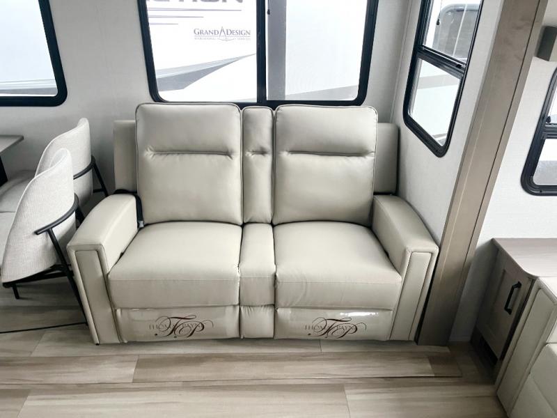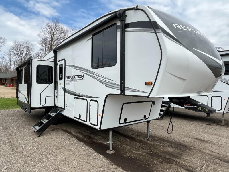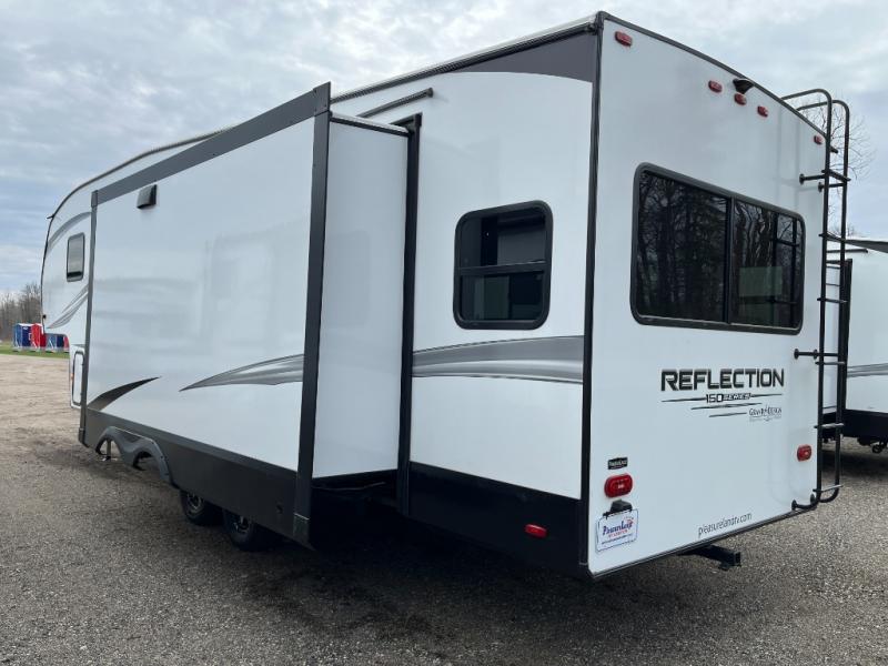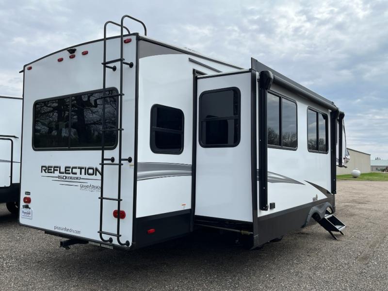 With any Reflection 150 Series fifth wheel by Grand Design, there is more available payload capacity and a broader range of half-ton trucks capable of towing this fifth wheel, and no slider hitch is needed thanks to the 90-degree turning radius which makes them short bed friendly and easier to tow. The mandatory Ultimate Power package provides a "One-Touch" automatic leveling system and a detachable power cord with LED light for easy setup, plus motion sensor pass-through lighting and entry lighting, and the Tire Linc TPMS will help you stay safe on the road. The interior offers residential luxury from the cabinetry and premium Congoleum flooring, to the booth dinette and residential-style window treatment. Make your refined decision today!