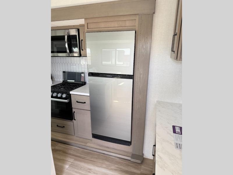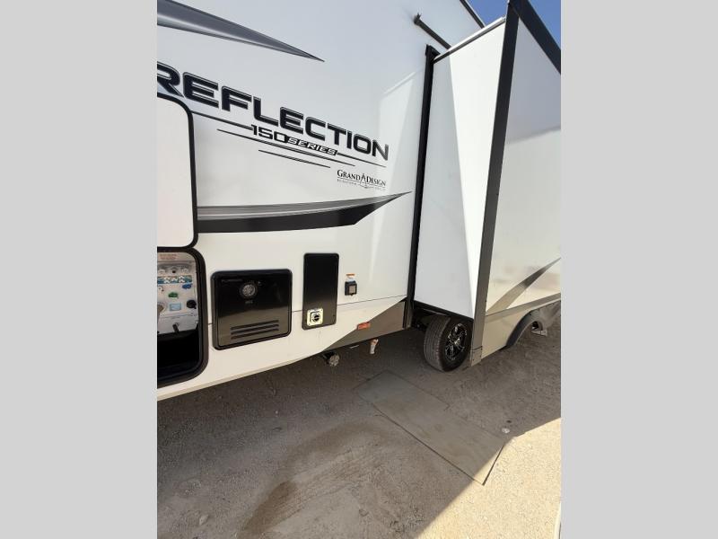 With any Reflection 150 Series fifth wheel by Grand Design, there is more available payload capacity and a broader range of half-ton trucks capable of towing this fifth wheel, and no slider hitch is needed thanks to the 90-degree turning radius which makes them short bed friendly and easier to tow. The mandatory Ultimate Power package provides a "One-Touch" automatic leveling system and a detachable power cord with LED light for easy setup, plus motion sensor pass-through lighting and entry lighting, and the Tire Linc TPMS will help you stay safe on the road. The interior offers residential luxury from the cabinetry and premium Congoleum flooring, to the booth dinette and residential-style window treatment. Make your refined decision today!