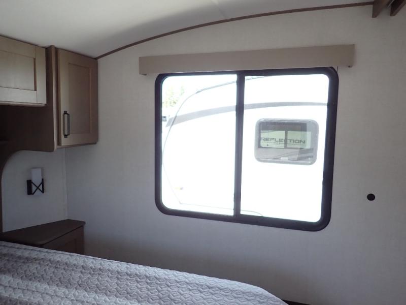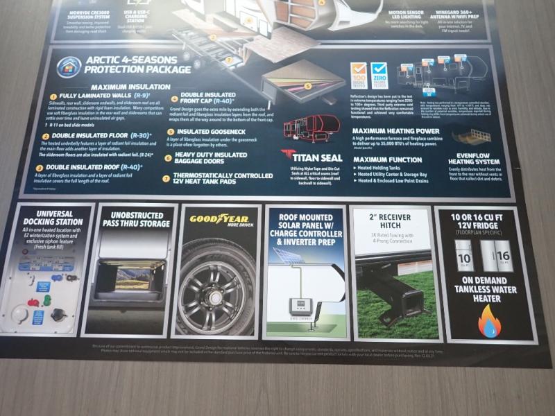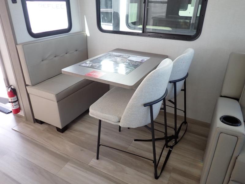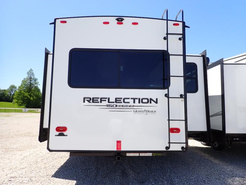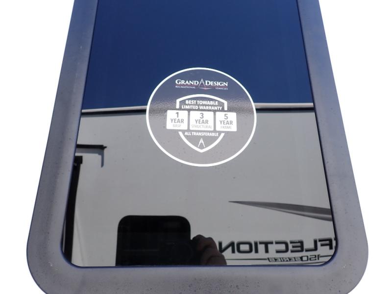 With any Reflection 150 Series fifth wheel by Grand Design, there is more available payload capacity and a broader range of half-ton trucks capable of towing this fifth wheel, and no slider hitch is needed thanks to the 90-degree turning radius which makes them short bed friendly and easier to tow. The mandatory Ultimate Power package provides a "One-Touch" automatic leveling system and a detachable power cord with LED light for easy setup, plus motion sensor pass-through lighting and entry lighting, and the Tire Linc TPMS will help you stay safe on the road. The interior offers residential luxury from the cabinetry and premium congoleum flooring, plus the booth dinette to the residential-style window treatment. Make your refined decision today!