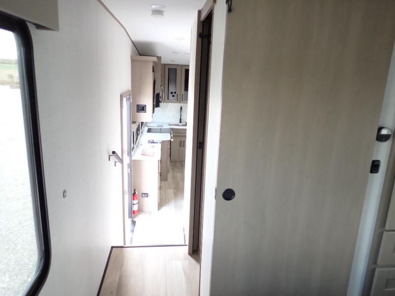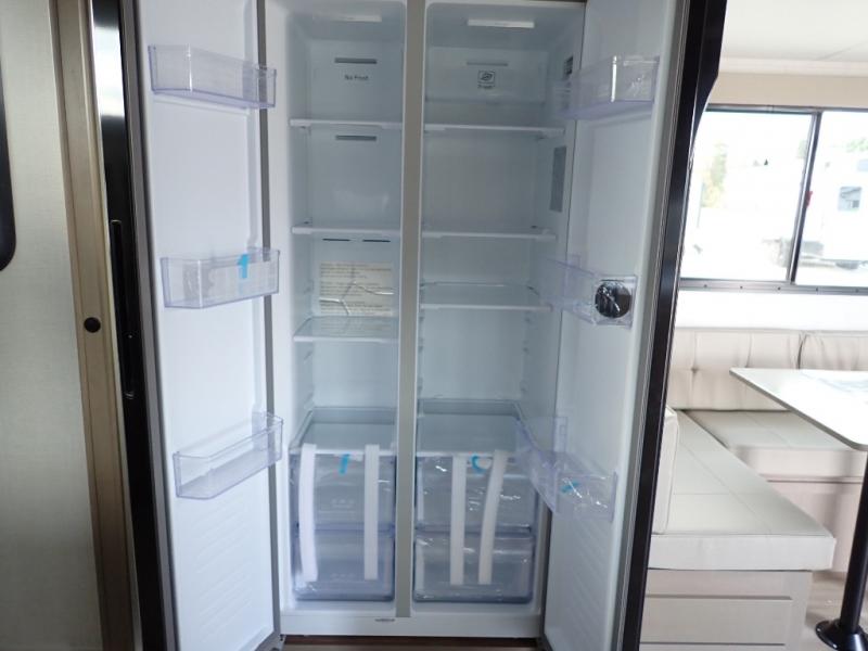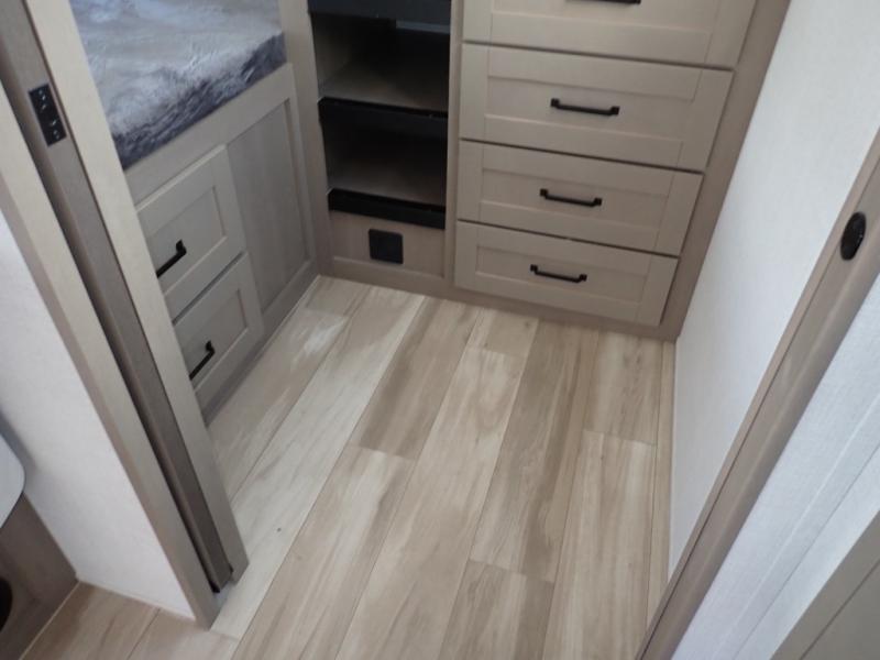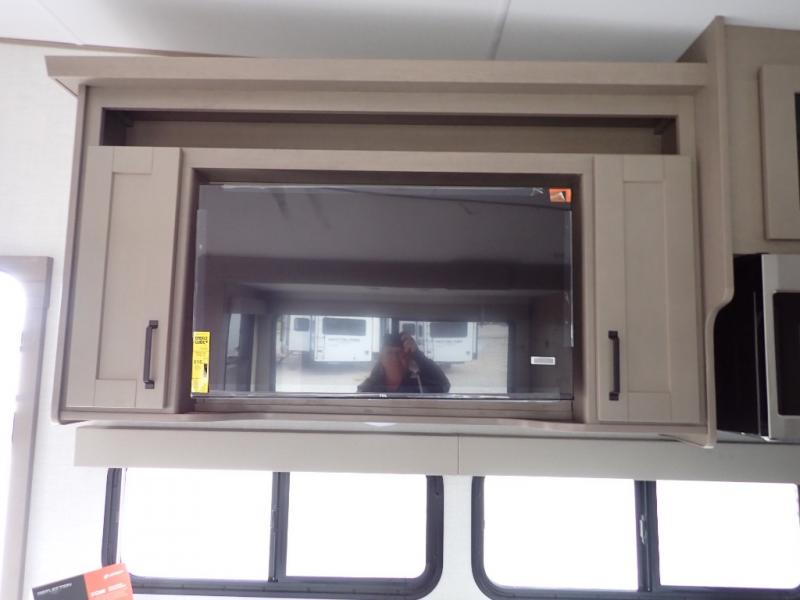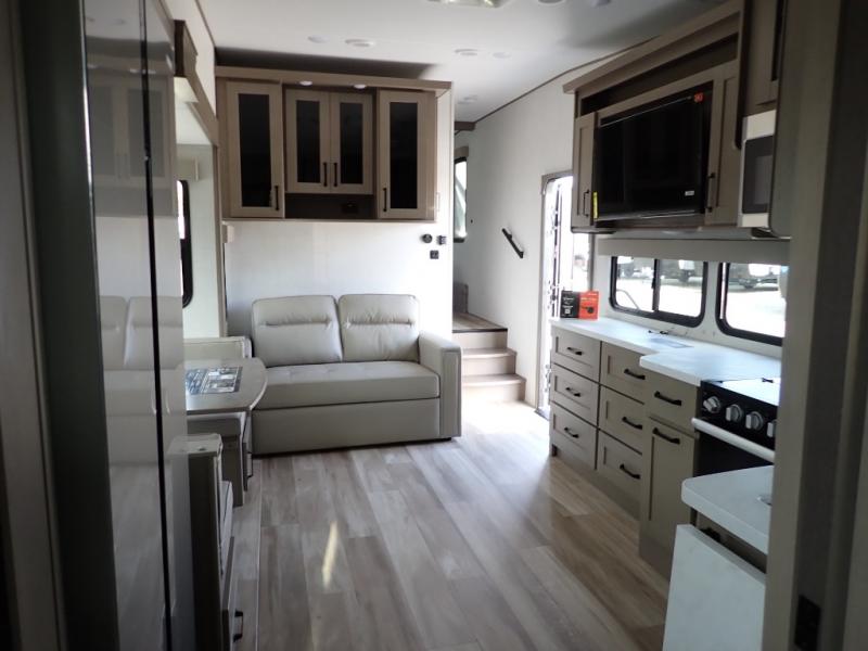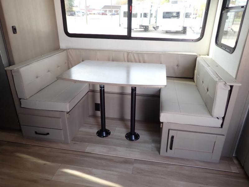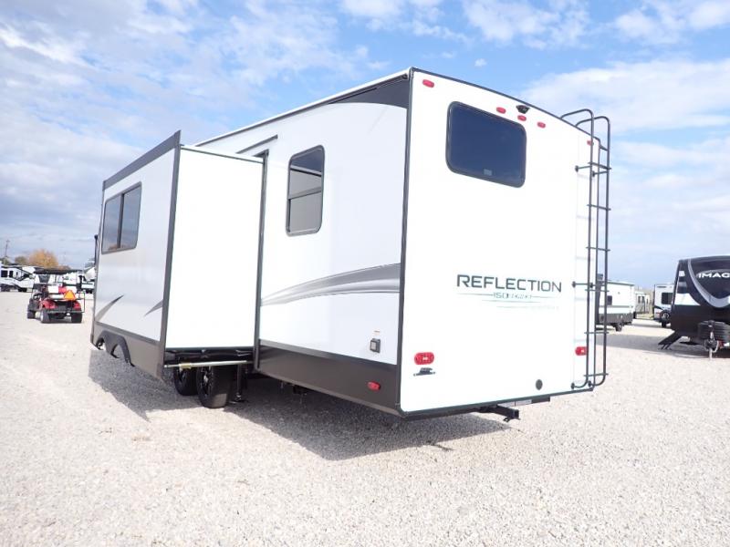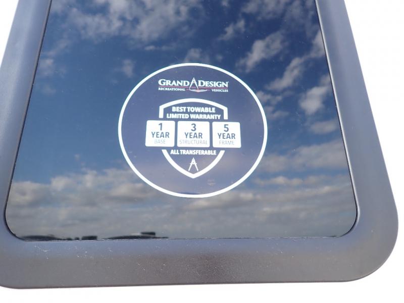 With any Reflection 150 Series fifth wheel by Grand Design, there is more available payload capacity and a broader range of half-ton trucks capable of towing this fifth wheel, and no slider hitch is needed thanks to the 90-degree turning radius which makes them short bed friendly and easier to tow. The mandatory Ultimate Power package provides a "One-Touch" automatic leveling system and a detachable power cord with LED light for easy setup, plus motion sensor pass-through lighting and entry lighting, and the Tire Linc TPMS will help you stay safe on the road. The interior offers residential luxury from the cabinetry and premium Congoleum flooring, to the booth dinette and residential-style window treatment. Make your refined decision today!