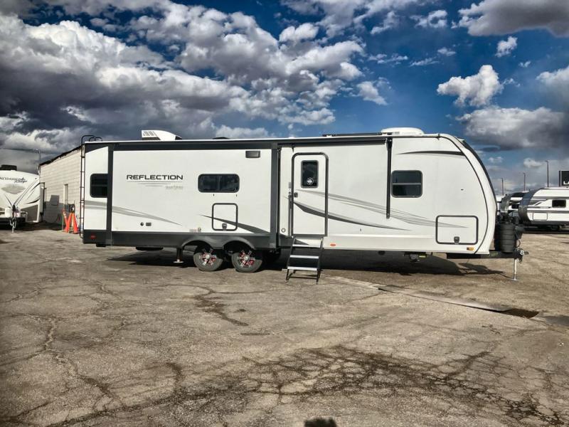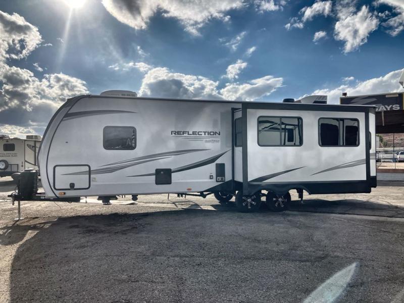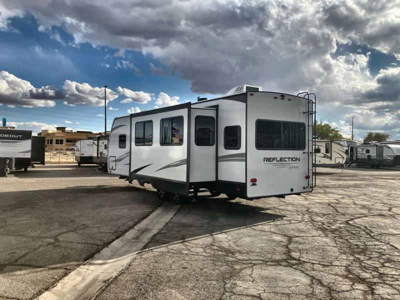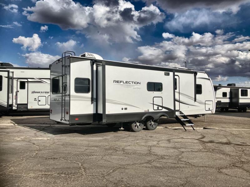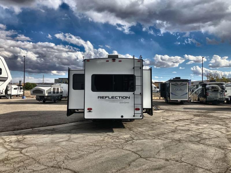 With any Reflection travel trailer by Grand Design, you will have a solar panel for off-grid camping and a 60 amp charge controller and inverter prep, a Universal All-In-One docking station, unobstructed pass-through storage, and Goodyear Endurance tires. Each is constructed of gel coat exterior sidewalls, residential 5" truss rafters, walk-on roof decking, a fiberglass and radiant foil roof and front cap insulation plus laminated aluminum framed side walls, roof and end walls in slide rooms. Head inside to enjoy residential hardwood cabinet doors, premium Congoleum flooring, a spacious shower with a glass door, and many more comforts!