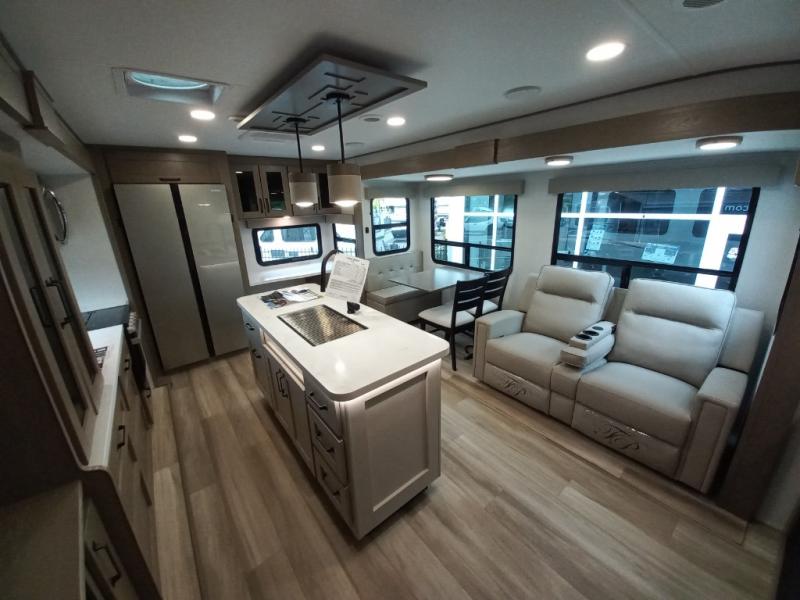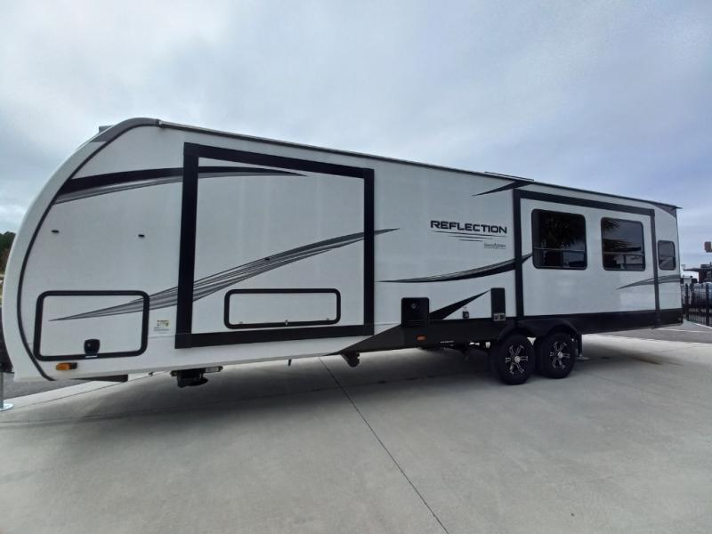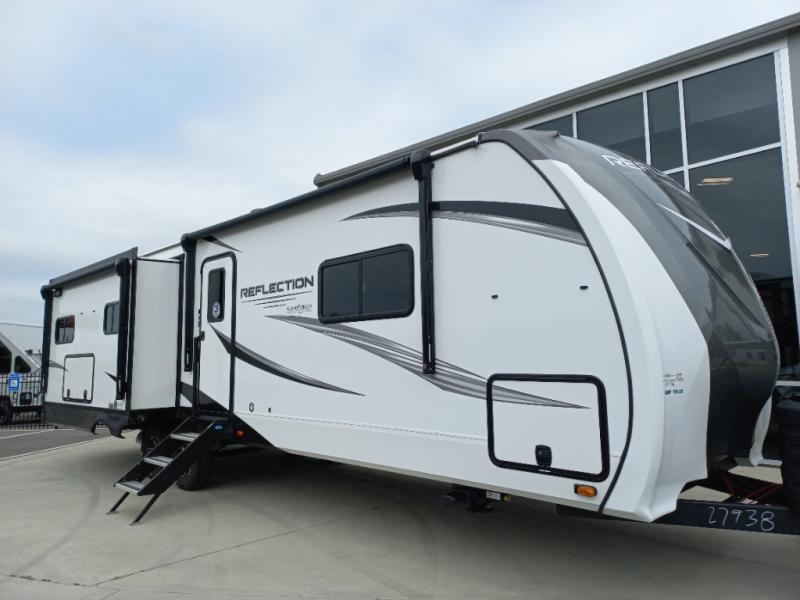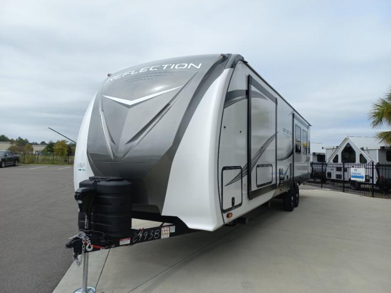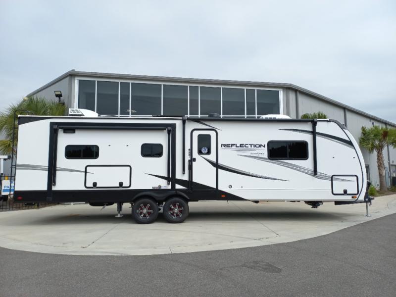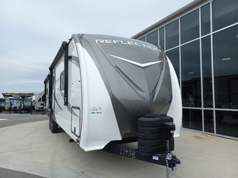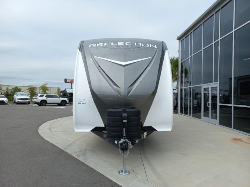 With any Reflection travel trailer by Grand Design, you will have a solar panel for off-grid camping and a 50 amp charge controller and inverter prep, a Universal All-In-One docking station, unobstructed pass-through storage, and nitrogen filled radial tires. Some other top features include the 30" stainless steel microwave, the maximum 7-foot headroom, and the ductless heating system with no vents in the floor to collect debris. Each is constructed of gel coat exterior sidewalls, residential 5" truss rafters, walk-on roof decking, a fiberglass and radiant foil roof and front cap insulation plus laminated aluminum framed side walls, roof and end walls in slide rooms. Choose luxury, value, and towability over all the others, take home a Reflection of your good taste!