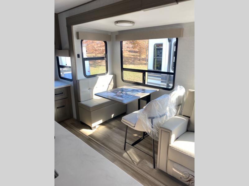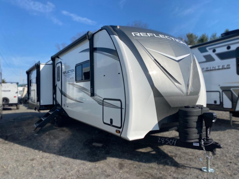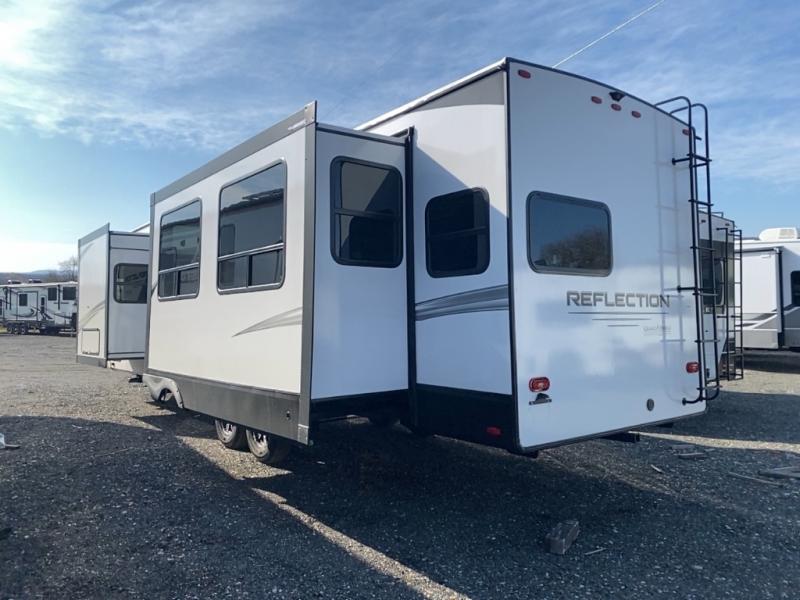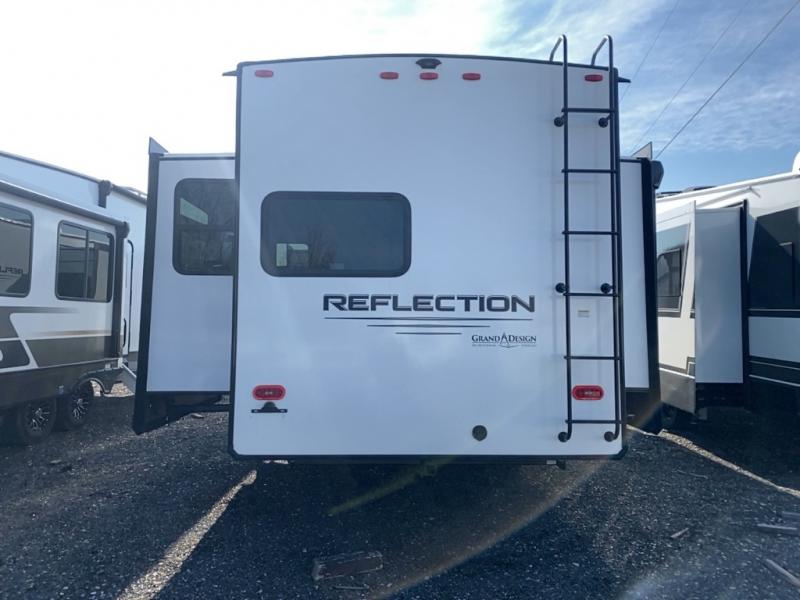 With any Reflection travel trailer by Grand Design, you will have a solar panel for off-grid camping and a 50 amp charge controller and inverter prep, a Universal All-In-One docking station, unobstructed pass-through storage, and nitrogen filled radial tires. Some other top features include the 30" stainless steel microwave, the maximum 7-foot headroom, and the ductless heating system with no vents in the floor to collect debris. Each is constructed of gel coat exterior sidewalls, residential 5" truss rafters, walk-on roof decking, a fiberglass and radiant foil roof and front cap insulation plus laminated aluminum framed side walls, roof and end walls in slide rooms. Choose luxury, value, and towability over all the others, take home a Reflection of your good taste!