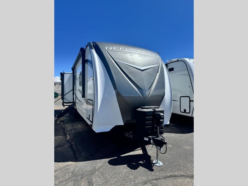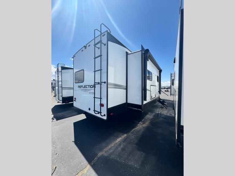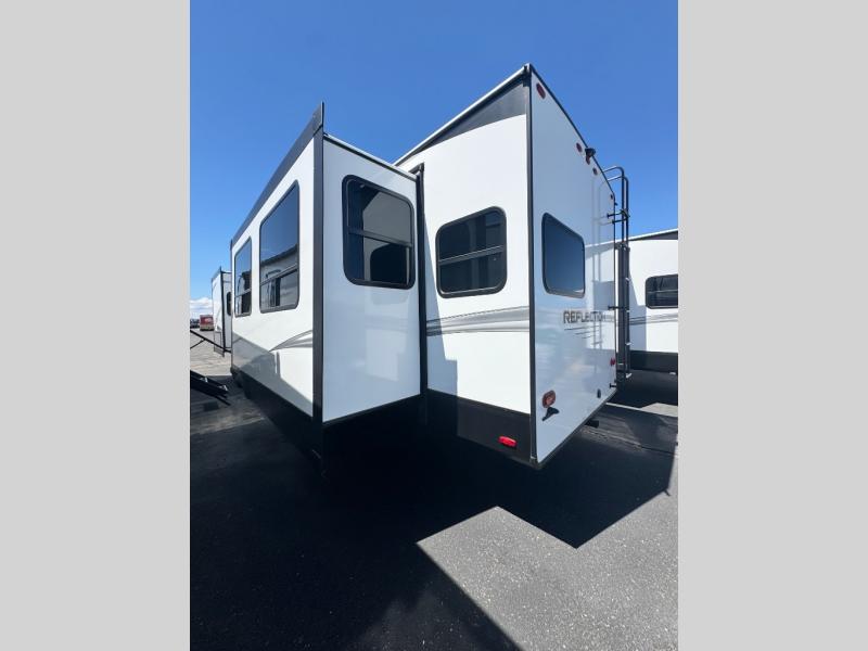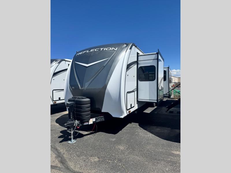 With any Reflection travel trailer by Grand Design, you will have a solar panel for off-grid camping and a 60 amp charge controller and inverter prep, a Universal All-In-One docking station, unobstructed pass-through storage, and Goodyear Endurance tires. Each is constructed of gel coat exterior sidewalls, residential 5" truss rafters, walk-on roof decking, a fiberglass and radiant foil roof and front cap insulation plus laminated aluminum framed side walls, roof and end walls in slide rooms. Head inside to enjoy residential hardwood cabinet doors, premium Congoleum flooring, a spacious shower with a glass door, and many more comforts!