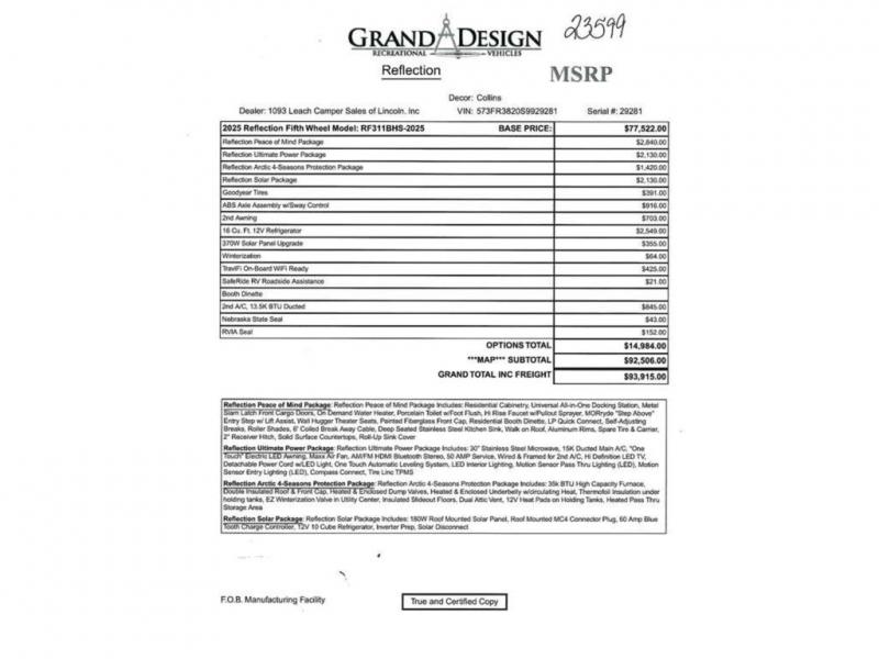 New 2025 Grand Design Reflection 311BHS Fifth Wheel