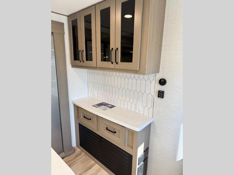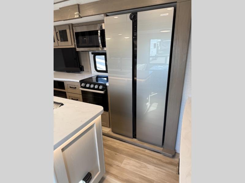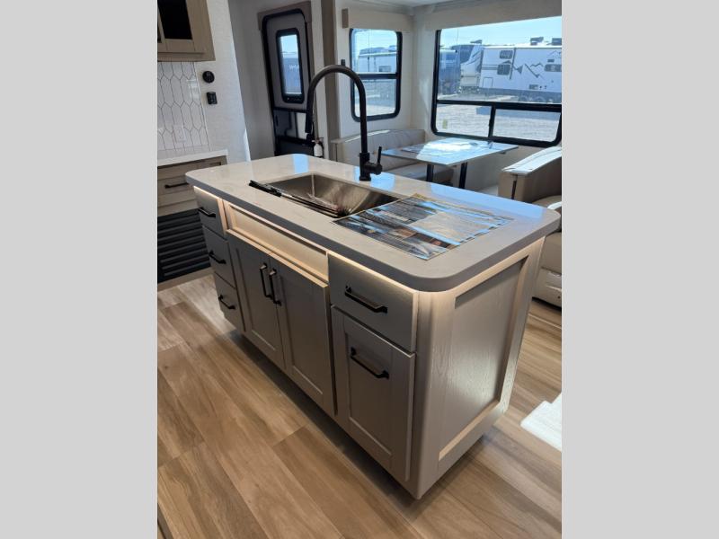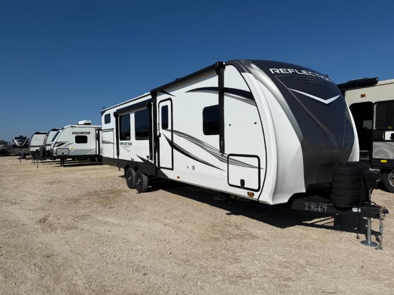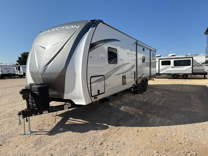 With any Reflection travel trailer by Grand Design, you will have a solar panel for off-grid camping and a 60 amp charge controller and inverter prep, a Universal All-In-One docking station, unobstructed pass-through storage, and Goodyear Endurance tires. Each is constructed of gel coat exterior sidewalls, residential 5" truss rafters, walk-on roof decking, a fiberglass and radiant foil roof and front cap insulation plus laminated aluminum framed side walls, roof and end walls in slide rooms. Head inside to enjoy residential hardwood cabinet doors, premium Congoleum flooring, a spacious shower with a glass door, and many more comforts!