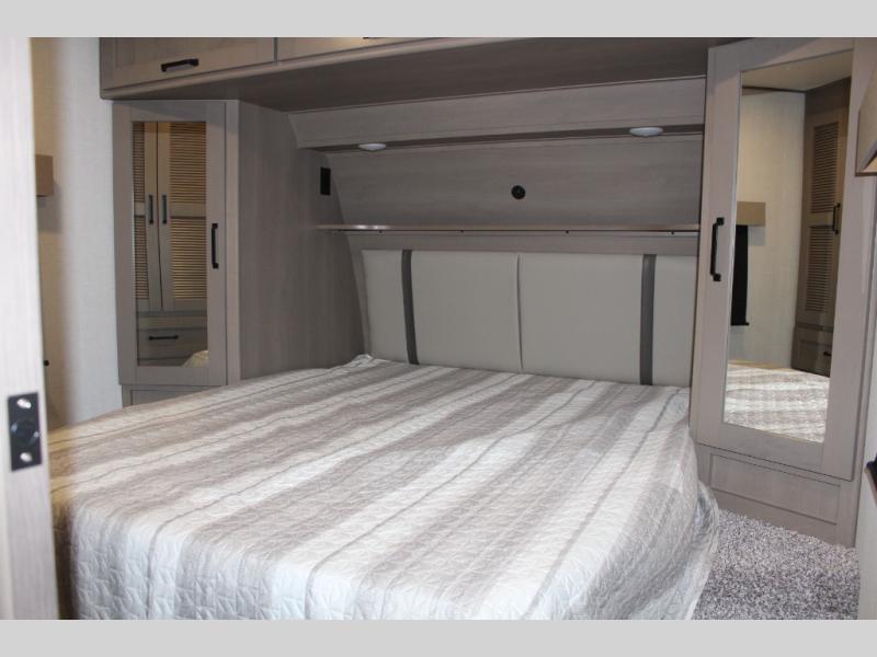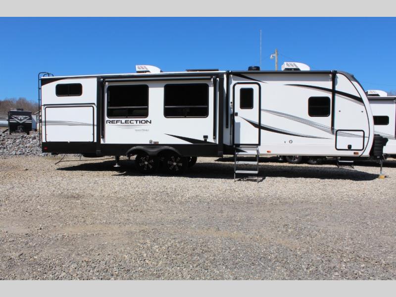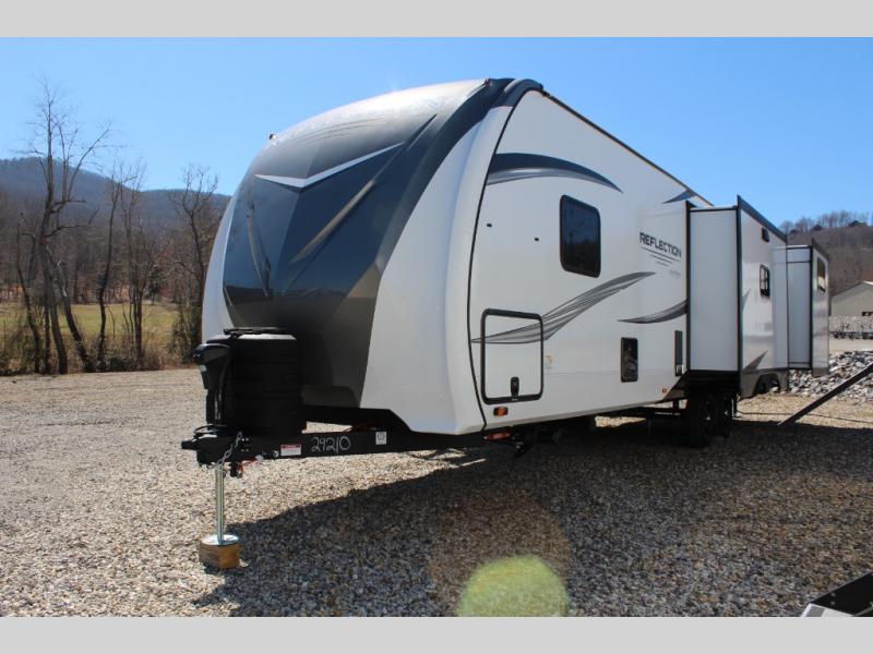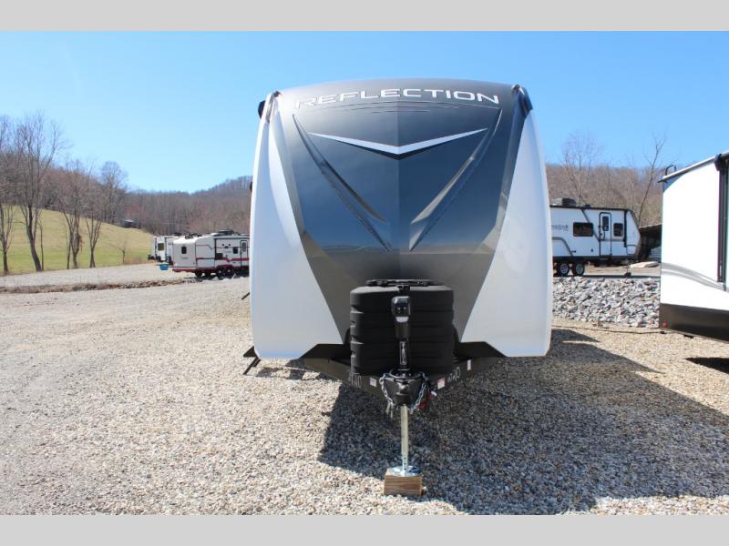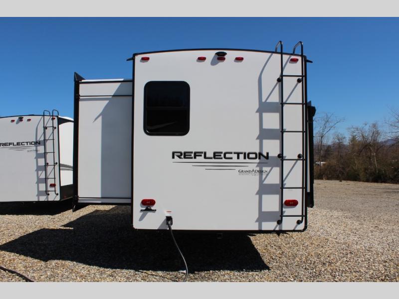 With any Reflection travel trailer by Grand Design, you will have a solar panel for off-grid camping and a 60 amp charge controller and inverter prep, a Universal All-In-One docking station, unobstructed pass-through storage, and Goodyear Endurance tires. Each is constructed of gel coat exterior sidewalls, residential 5" truss rafters, walk-on roof decking, a fiberglass and radiant foil roof and front cap insulation plus laminated aluminum framed side walls, roof and end walls in slide rooms. Head inside to enjoy residential hardwood cabinet doors, premium Congoleum flooring, a spacious shower with a glass door, and many more comforts!