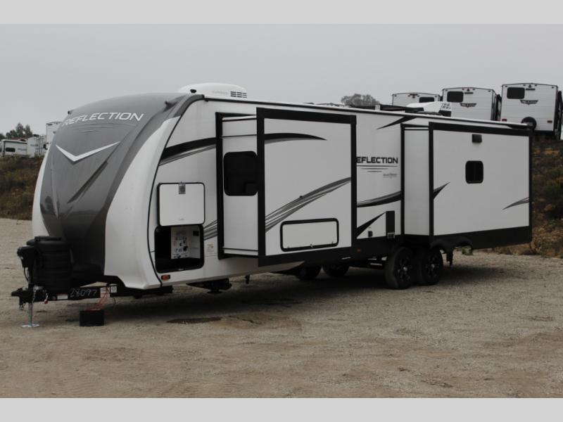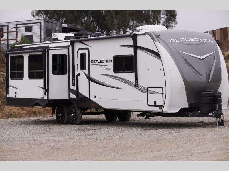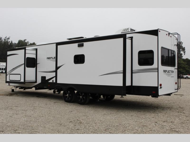 With any Reflection travel trailer by Grand Design, you will have a solar panel for off-grid camping and a 50 amp charge controller and inverter prep, a Universal All-In-One docking station, unobstructed pass-through storage, and nitrogen filled radial tires. Some other top features include the 30" stainless steel microwave, the maximum 7-foot headroom, and the ductless heating system with no vents in the floor to collect debris. Each is constructed of gel coat exterior sidewalls, residential 5" truss rafters, walk-on roof decking, a fiberglass and radiant foil roof and front cap insulation plus laminated aluminum framed side walls, roof and end walls in slide rooms. Choose luxury, value, and towability over all the others, take home a Reflection of your good taste!