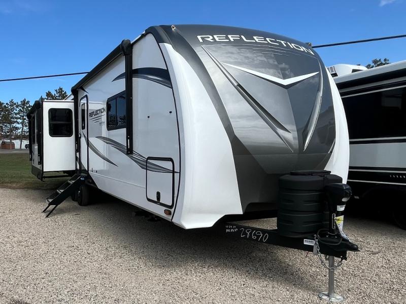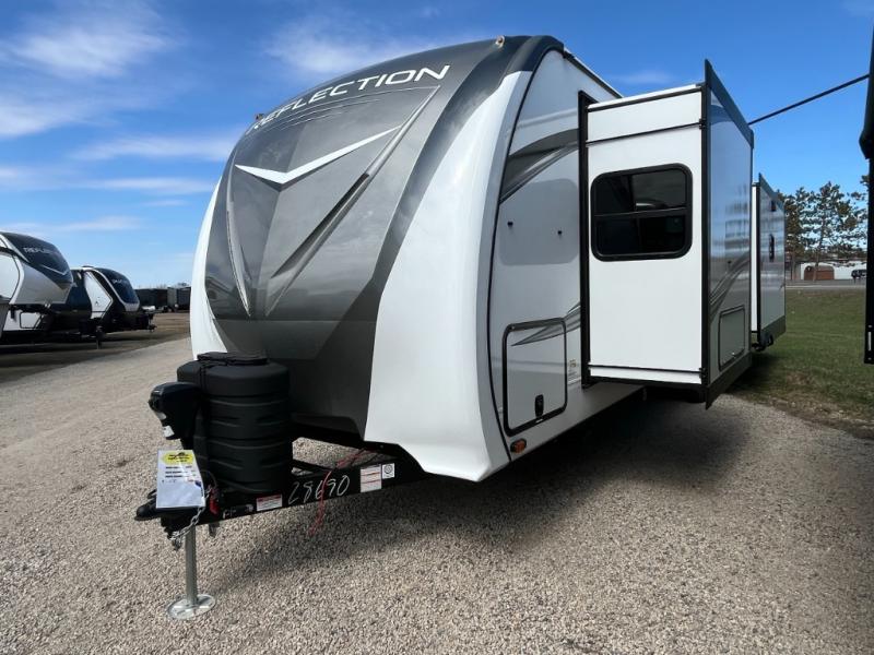 With any Reflection travel trailer by Grand Design, you will have a solar panel for off-grid camping and a 60 amp charge controller and inverter prep, a Universal All-In-One docking station, unobstructed pass-through storage, and Goodyear Endurance tires. Each is constructed of gel coat exterior sidewalls, residential 5" truss rafters, walk-on roof decking, a fiberglass and radiant foil roof and front cap insulation plus laminated aluminum framed side walls, roof and end walls in slide rooms. Head inside to enjoy residential hardwood cabinet doors, premium Congoleum flooring, a spacious shower with a glass door, and many more comforts!
