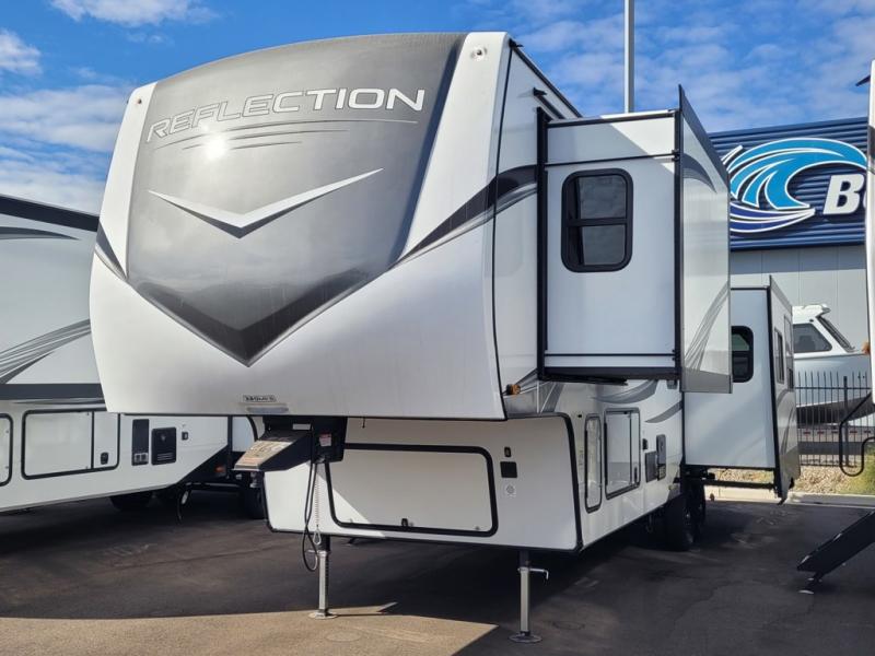 Each Reflection fifth wheel and travel trailer by Grand Design is packed with luxury features for an overall better camping experience! The MORryde 3000CRE suspension provides smooth towing to your destination and the durable construction materials mean you can enjoy your RV for years to come. These units include the Arctic 4-Seasons Protection Package that will extend your camping season thanks to the extreme temperature testing and maximum heating power. The interior of these travel trailers and fifth wheels are designed to make you feel at home with residential cabinetry, solid surface countertops, roller shades, a spacious shower with a glass door, residential bedrooms, and the list goes on! Choose a Reflection today and start a new adventure tomorrow!