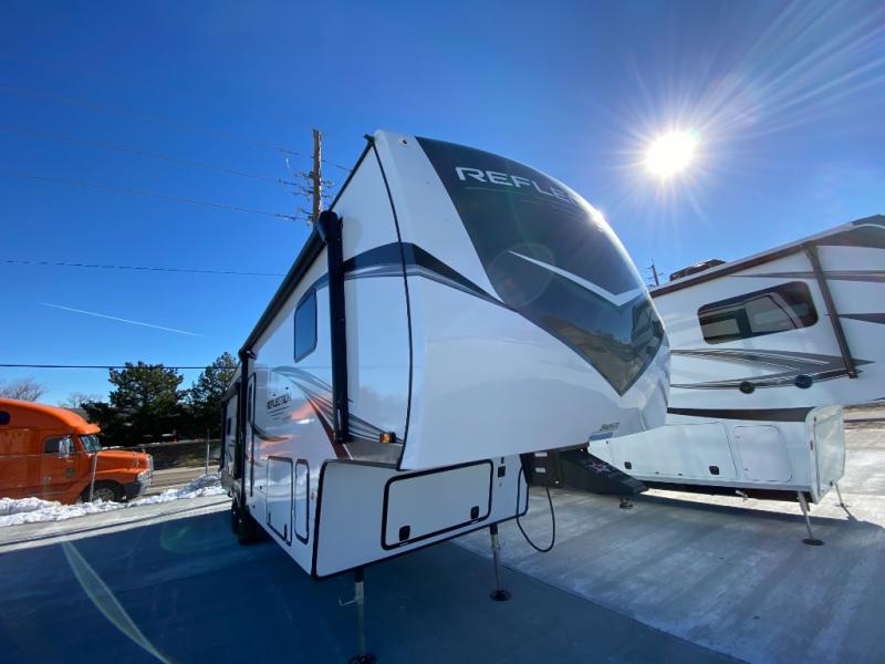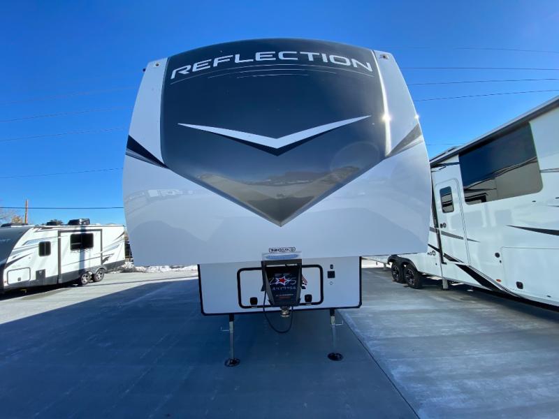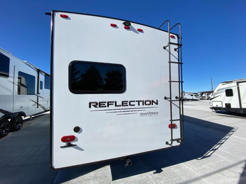 With any Reflection fifth wheel by Grand Design, you will have a solar panel for off-grid camping and a 60 amp charge controller and inverter prep, a Universal All-In-One docking station, unobstructed pass-through storage, and Goodyear Endurance tires. Each is constructed of gel coat exterior sidewalls, residential 5" truss rafters, walk-on roof decking, a fiberglass and radiant foil roof and front cap insulation plus laminated aluminum framed side walls, roof and end walls in slide rooms. Head inside to enjoy residential hardwood cabinet doors, premium Congoleum flooring, a spacious shower with a glass door, and many more comforts!