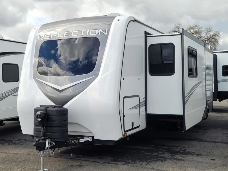 With any Reflection travel trailer by Grand Design, you will have a solar panel for off-grid camping and a 60 amp charge controller and inverter prep, a Universal All-In-One docking station, unobstructed pass-through storage, and Goodyear Endurance tires. Each is constructed of gel coat exterior sidewalls, residential 5" truss rafters, walk-on roof decking, a fiberglass and radiant foil roof and front cap insulation plus laminated aluminum framed side walls, roof and end walls in slide rooms. Head inside to enjoy residential hardwood cabinet doors, premium Congoleum flooring, a spacious shower with a glass door, and many more comforts!