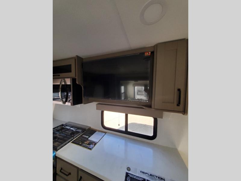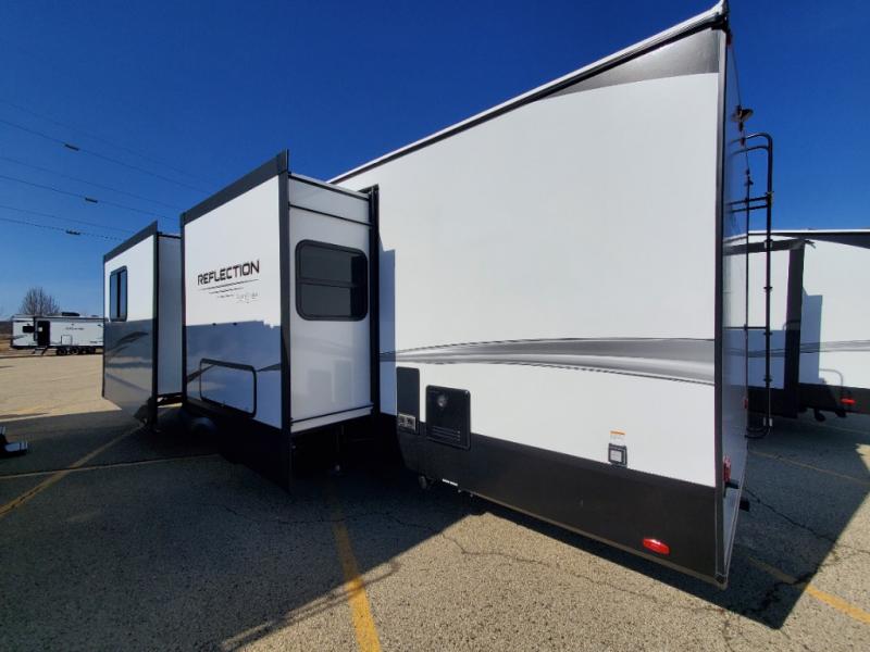 With any Reflection travel trailer by Grand Design, you will have a solar panel for off-grid camping and a 60 amp charge controller and inverter prep, a Universal All-In-One docking station, unobstructed pass-through storage, and Goodyear Endurance tires. Each is constructed of gel coat exterior sidewalls, residential 5" truss rafters, walk-on roof decking, a fiberglass and radiant foil roof and front cap insulation plus laminated aluminum framed side walls, roof and end walls in slide rooms. Head inside to enjoy residential hardwood cabinet doors, premium Congoleum flooring, a spacious shower with a glass door, and many more comforts!