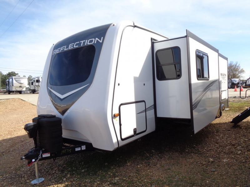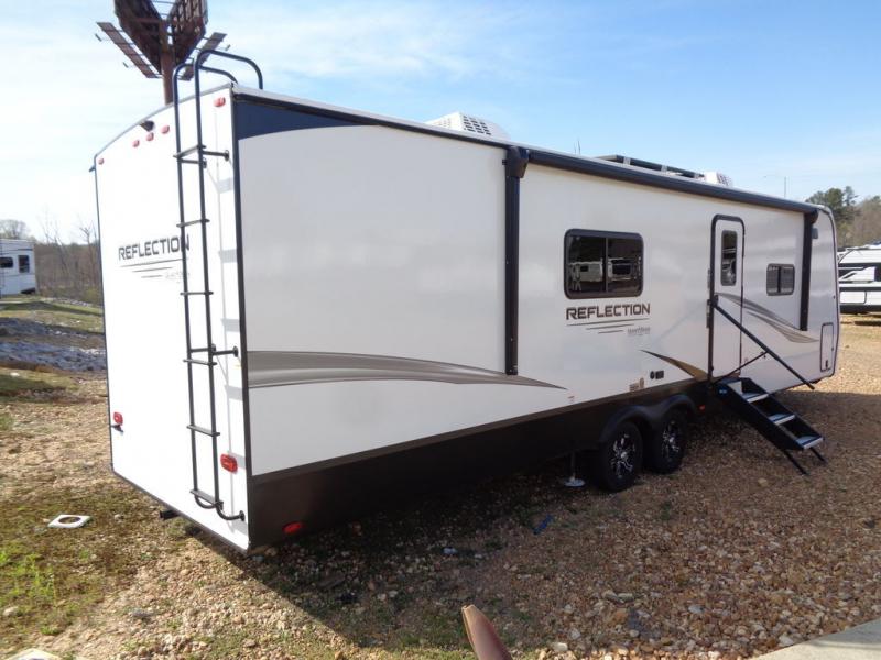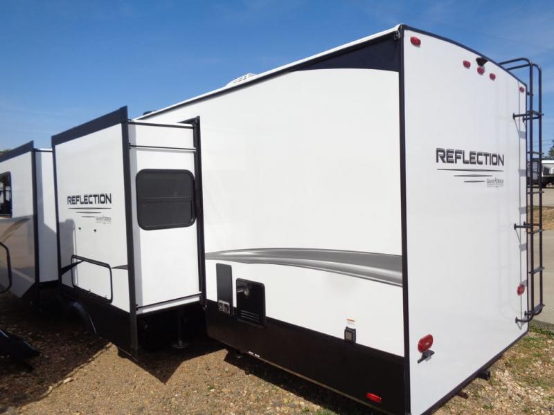 With any Reflection travel trailer by Grand Design, you will have a solar panel for off-grid camping and a 60 amp charge controller and inverter prep, a Universal All-In-One docking station, unobstructed pass-through storage, and Goodyear Endurance tires. Each is constructed of gel coat exterior sidewalls, residential 5" truss rafters, walk-on roof decking, a fiberglass and radiant foil roof and front cap insulation plus laminated aluminum framed side walls, roof and end walls in slide rooms. Head inside to enjoy residential hardwood cabinet doors, premium Congoleum flooring, a spacious shower with a glass door, and many more comforts!