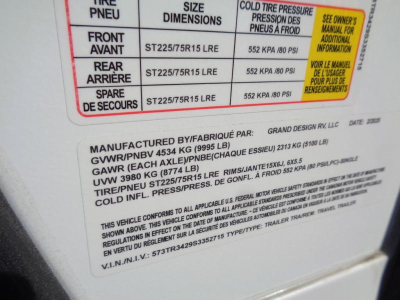 New 2025 Grand Design Reflection 322FKTS Travel Trailer