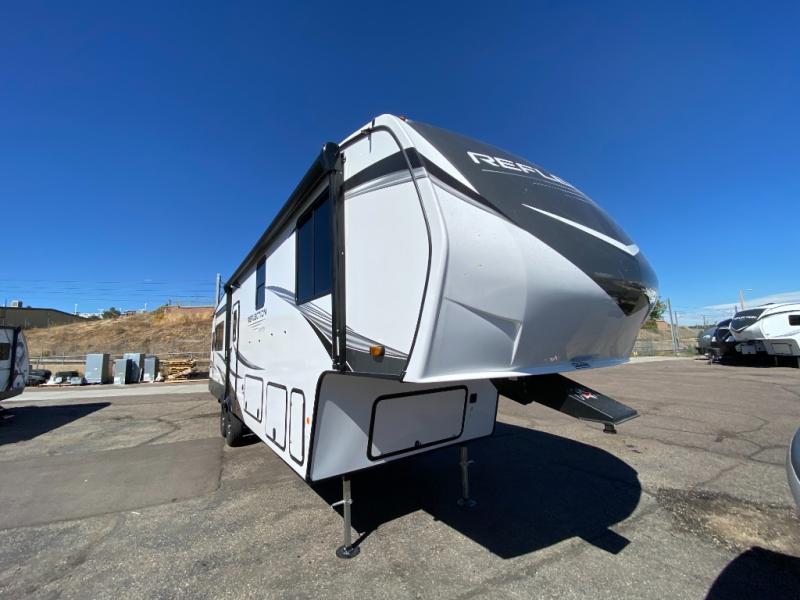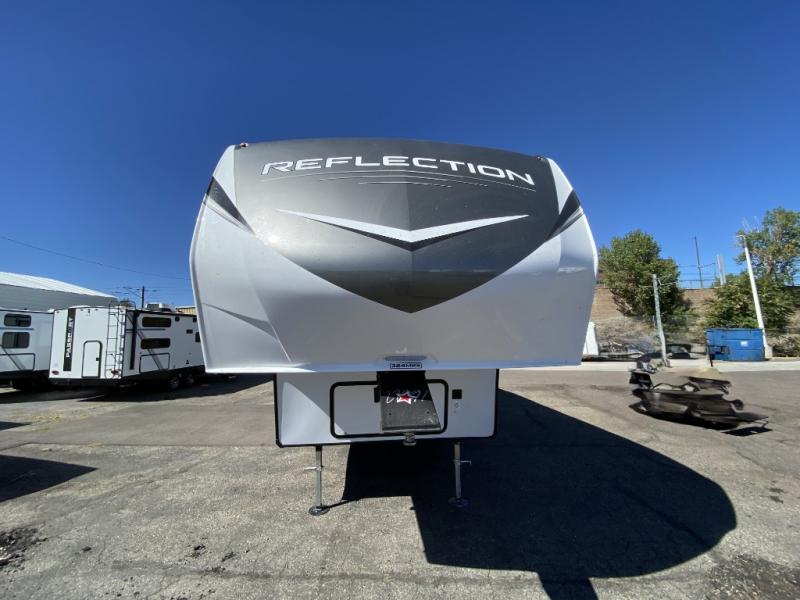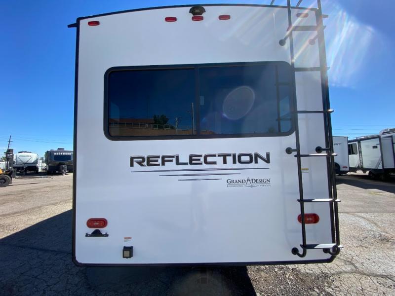 With any Reflection fifth wheel by Grand Design, you will have a solar panel for off-grid camping and a 60 amp charge controller and inverter prep, a Universal All-In-One docking station, unobstructed pass-through storage, and Goodyear Endurance tires. Each is constructed of gel coat exterior sidewalls, residential 5" truss rafters, walk-on roof decking, a fiberglass and radiant foil roof and front cap insulation plus laminated aluminum framed side walls, roof and end walls in slide rooms. Head inside to enjoy residential hardwood cabinet doors, premium Congoleum flooring, a spacious shower with a glass door, and many more comforts!