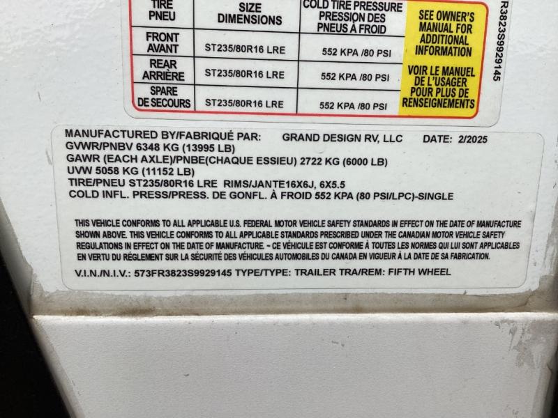 New 2025 Grand Design Reflection 324MBS Fifth Wheel