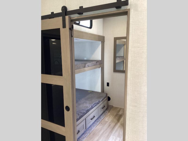 The 2025 Grand Design Reflection 324MBS is a game-changing mid-bunk fifth wheel that combines residential-style comfort with innovative design for full-time living or extended travel. With a unique mid-bunk room, open-concept living space, and a spacious master suite, this RV is perfect for families, remote workers, or couples who need extra space on the road.