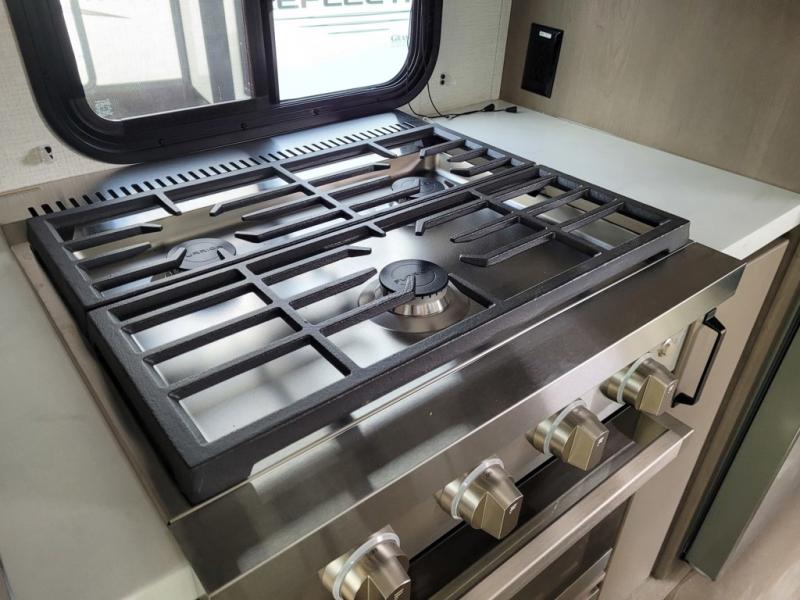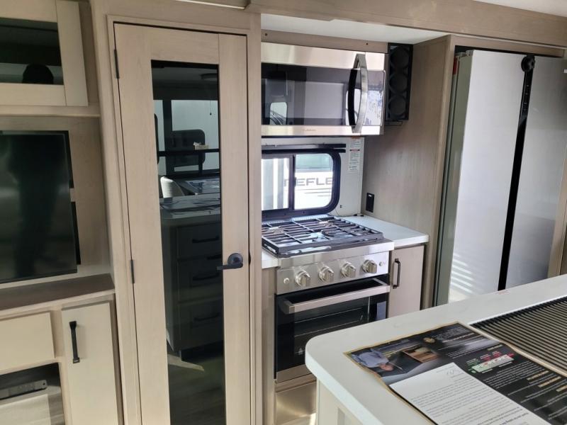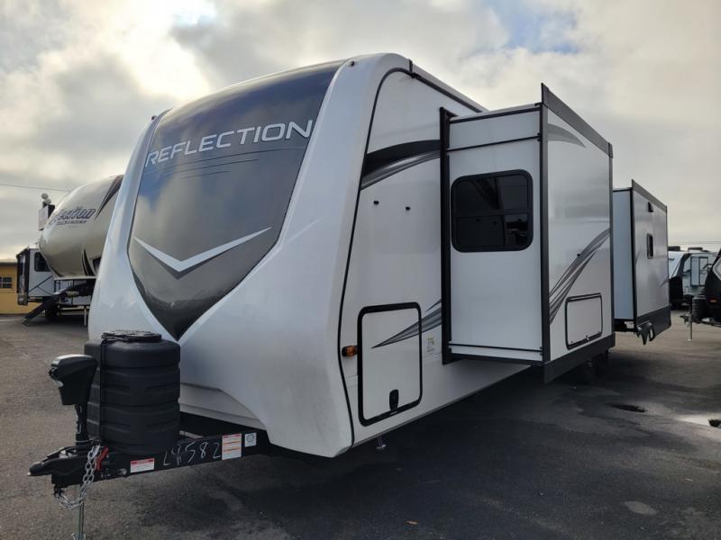 With any Reflection travel trailer by Grand Design, you will have a solar panel for off-grid camping and a 60 amp charge controller and inverter prep, a Universal All-In-One docking station, unobstructed pass-through storage, and Goodyear Endurance tires. Each is constructed of gel coat exterior sidewalls, residential 5" truss rafters, walk-on roof decking, a fiberglass and radiant foil roof and front cap insulation plus laminated aluminum framed side walls, roof and end walls in slide rooms. Head inside to enjoy residential hardwood cabinet doors, premium Congoleum flooring, a spacious shower with a glass door, and many more comforts!