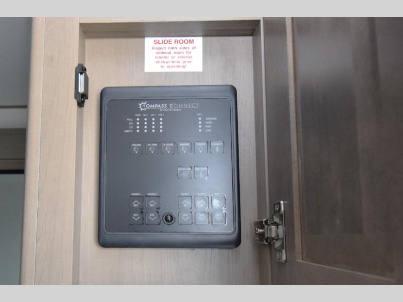 High-def LED TV, Compass Connect RV control system, and “One-Touch” electric awning for easy automation and comfort