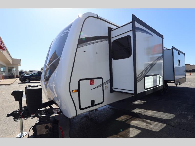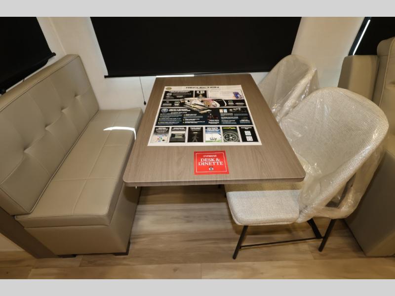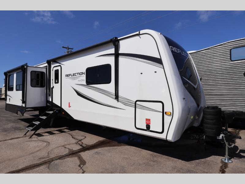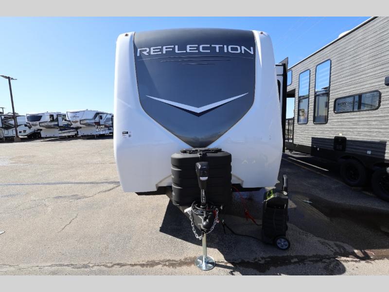 With any Reflection travel trailer by Grand Design, you will have a solar panel for off-grid camping and a 60 amp charge controller and inverter prep, a Universal All-In-One docking station, unobstructed pass-through storage, and Goodyear Endurance tires. Each is constructed of gel coat exterior sidewalls, residential 5" truss rafters, walk-on roof decking, a fiberglass and radiant foil roof and front cap insulation plus laminated aluminum framed side walls, roof and end walls in slide rooms. Head inside to enjoy residential hardwood cabinet doors, premium Congoleum flooring, a spacious shower with a glass door, and many more comforts!