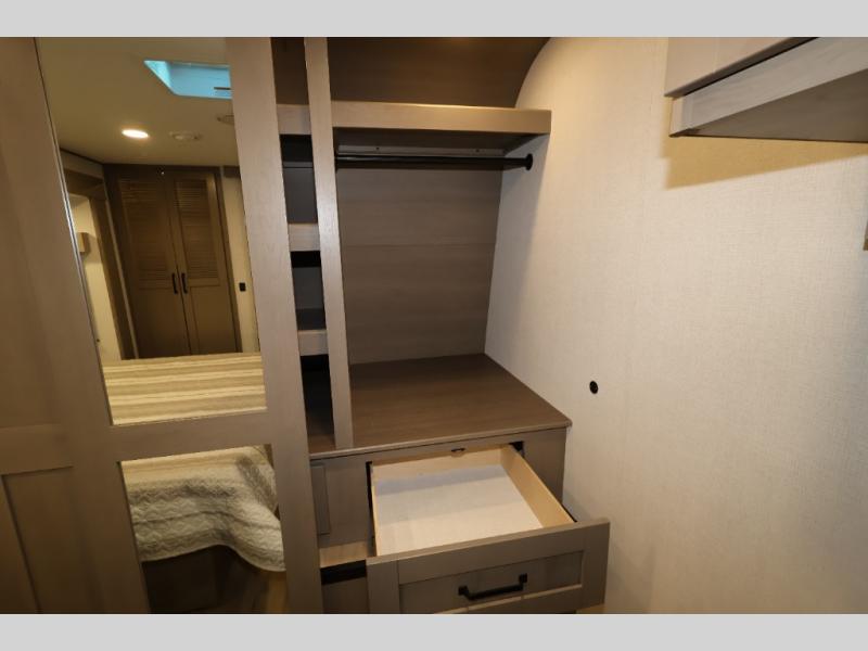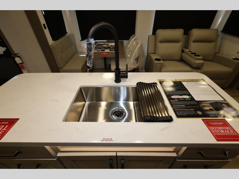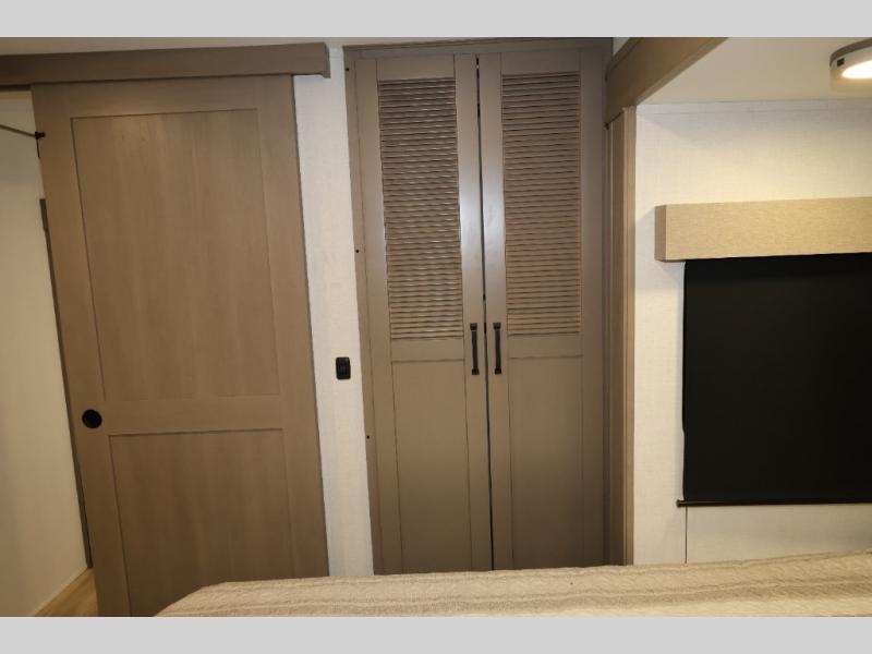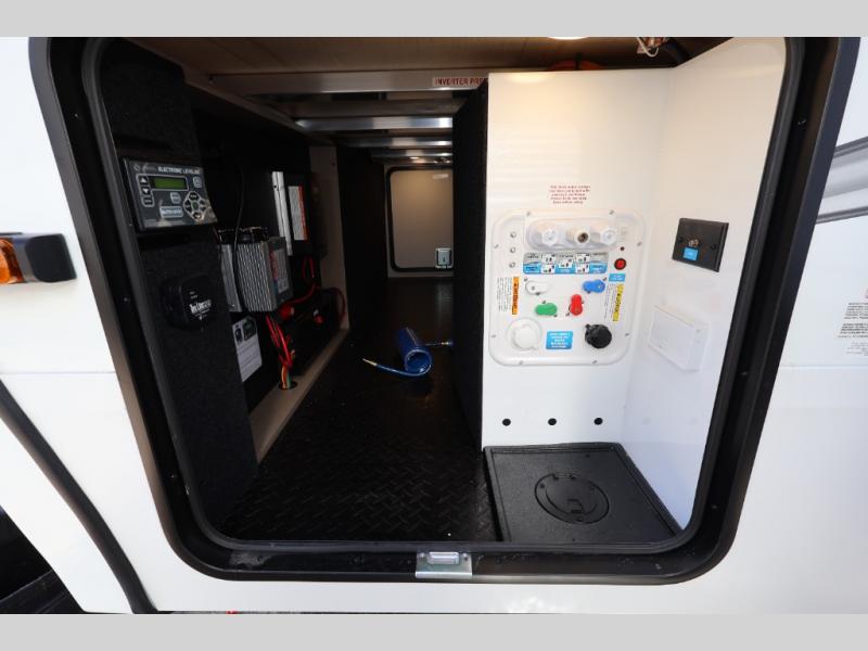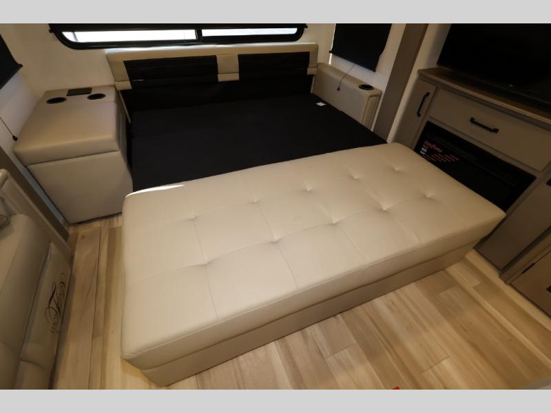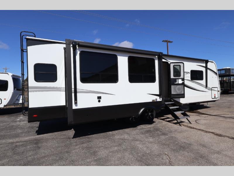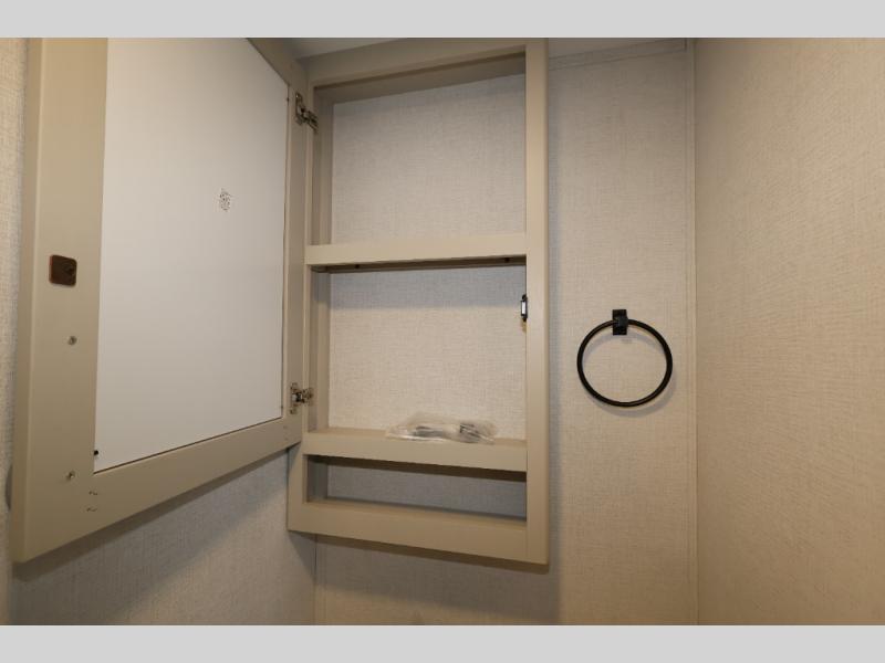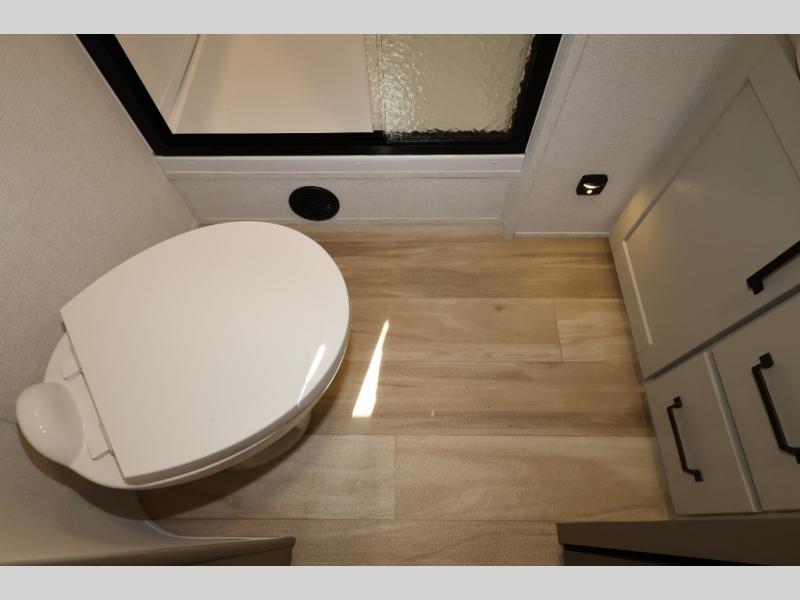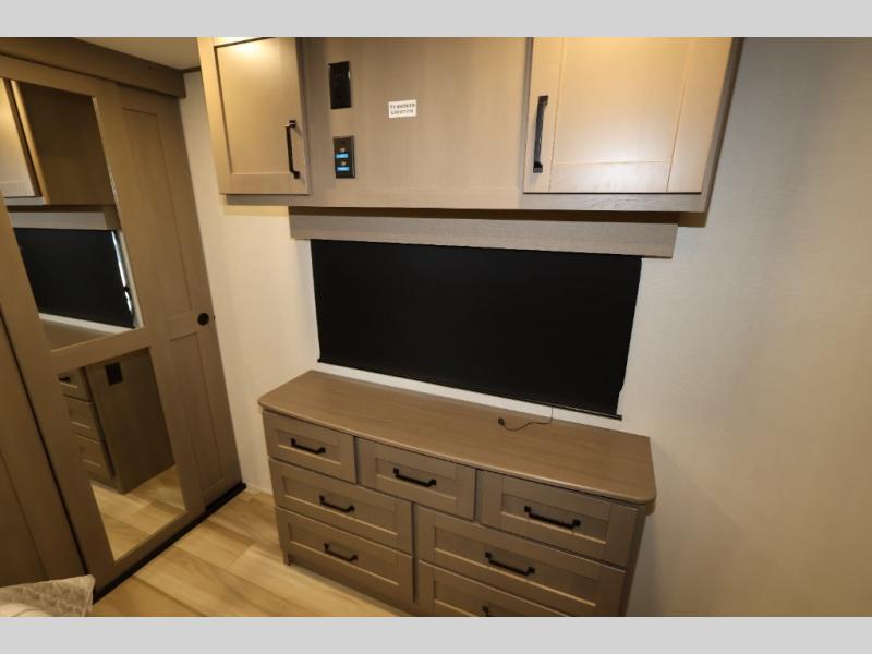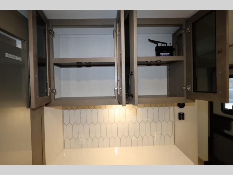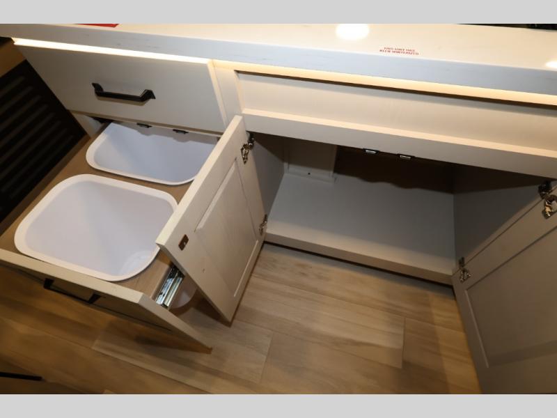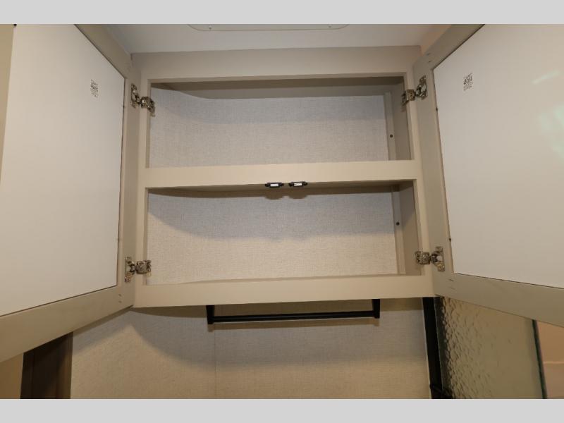 This rear living travel trailer will be perfect for extended stays at the campground or quick weekend trips to the lake! Once you've unloaded your gear from the pass-thru storage, head inside to relax on the rear tri-fold sofa with an adjustable headrest or on the theater seating across from the 40" TV and fireplace. There is also a booth dinette where you can dine together, or you can choose the optional swivel dinette. The spacious kitchen island will make meal time easier than ever, plus there is a pantry and 16 cu. ft. 12V refrigerator for food storage. The full bath is right next to the front private bedroom for easy nighttime use, and speaking of nighttime, you're sure to sleep soundly on the queen bed slide. There is also a large front closet, TV prep, plus washer and dryer prep if you choose to add these appliances.
