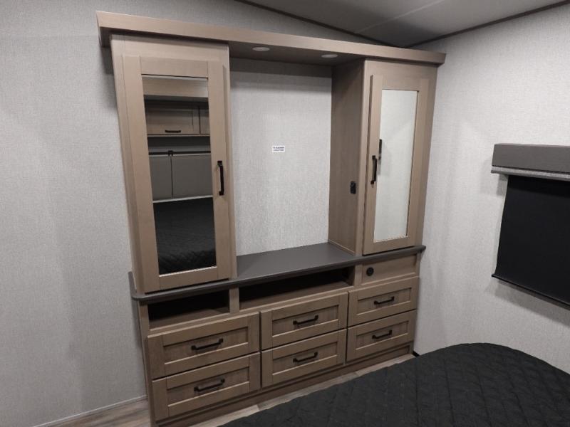 Each Reflection fifth wheel and travel trailer by Grand Design is packed with luxury features for an overall better camping experience! The MORryde 3000CRE suspension provides smooth towing to your destination and the durable construction materials mean you can enjoy your RV for years to come. These units include the Arctic 4-Seasons Protection Package that will extend your camping season thanks to the extreme temperature testing and maximum heating power. The interior of these travel trailers and fifth wheels are designed to make you feel at home with residential cabinetry, solid surface countertops, roller shades, a spacious shower with a glass door, residential bedrooms, and the list goes on! Choose a Reflection today and start a new adventure tomorrow!